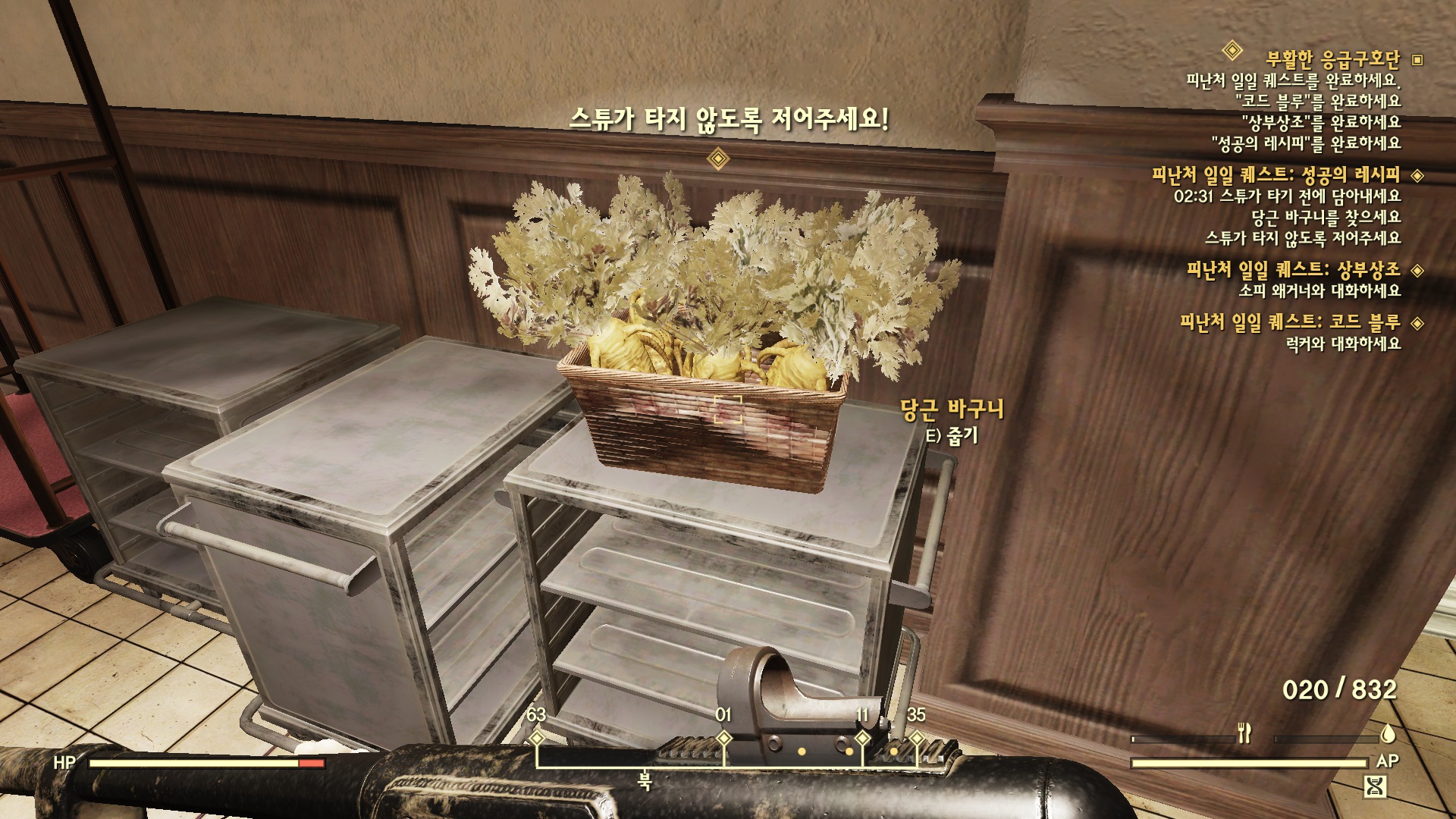 가장 기본이 되는 스튜 타지 않게 저어주기. 국자를 선택하면 된다. 한번 저으면 3분의 시간이 주어진다. 3분안에 한번씩 하면 된다는 소리.