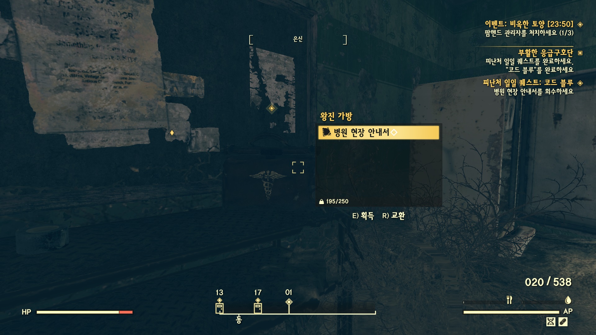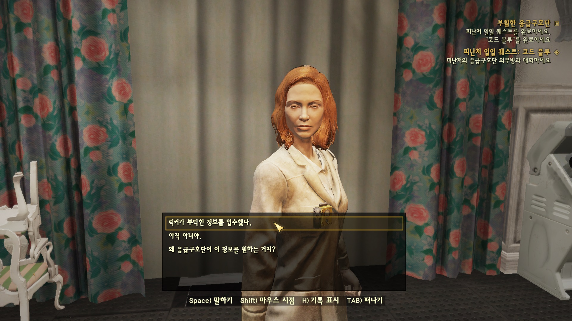 응급구호단 의무병과 대화해서 정보를 건네주면 퀘스트가 완료된다.