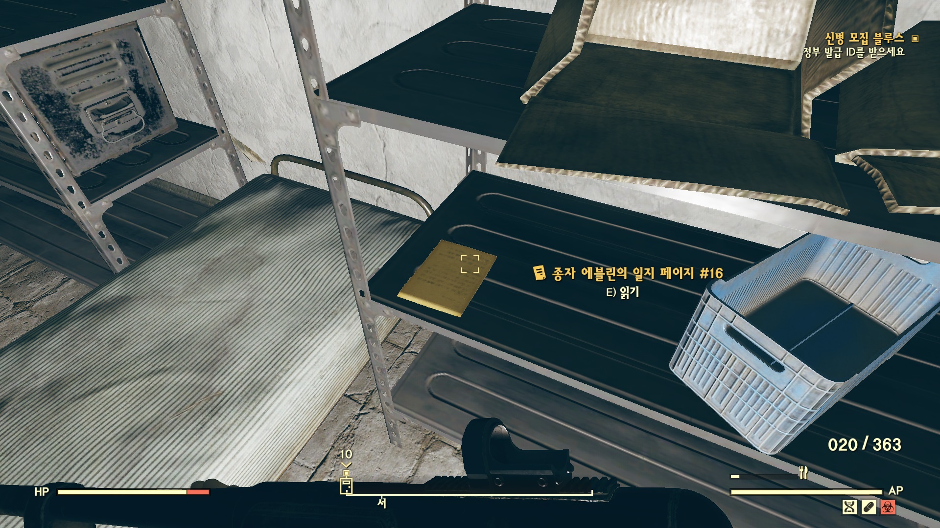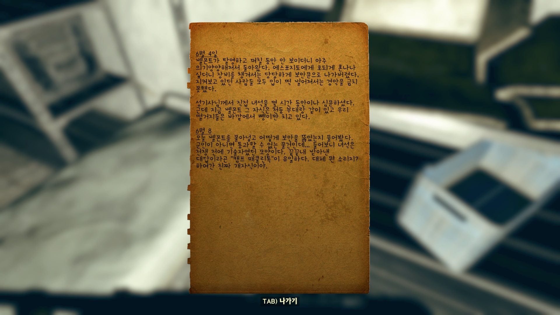 '종자 에블리 일지 페이지 #16'을 읽어보면 보안문을 통과했는데 단서는 군인과 '캠프 매클린톡'이란걸 알 수 있다. '기본 다지기 (Back to Basic)'를 완료해서 군인으로써 정식으로 등록을 해야 보안문을 지나갈 수 있다는 소리다.