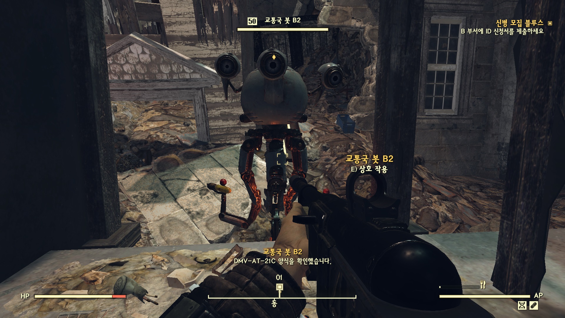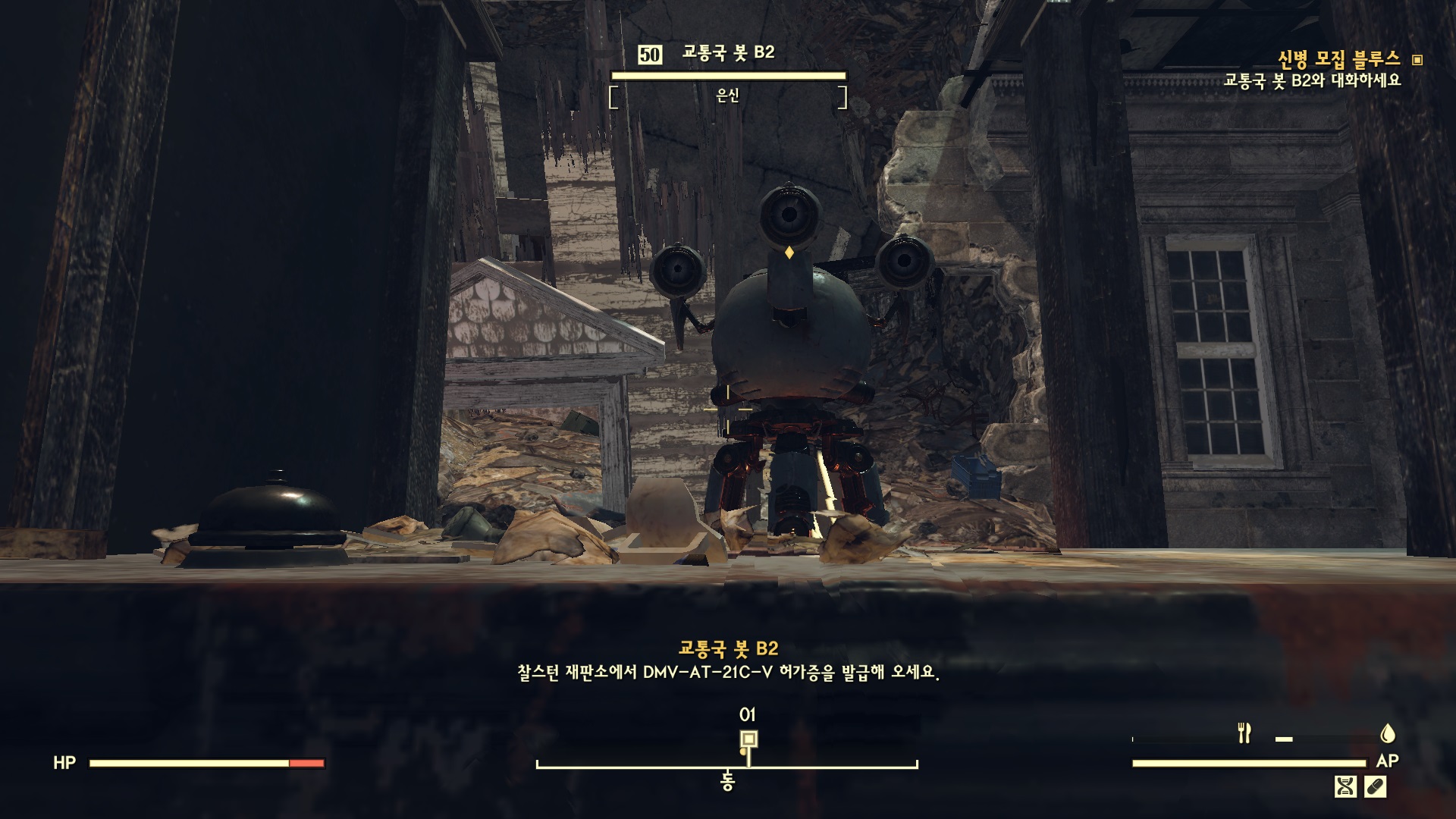 빈 DMV-AT-21C-V 양식을 가지고 교통국 봇 B에게 간다. 가끔 양식을 가지고 있는데도 자꾸 양식 가져오라고 하면 좀 멀리 떨어졌다가 다시 다가간다. 그러면 진행 된다.