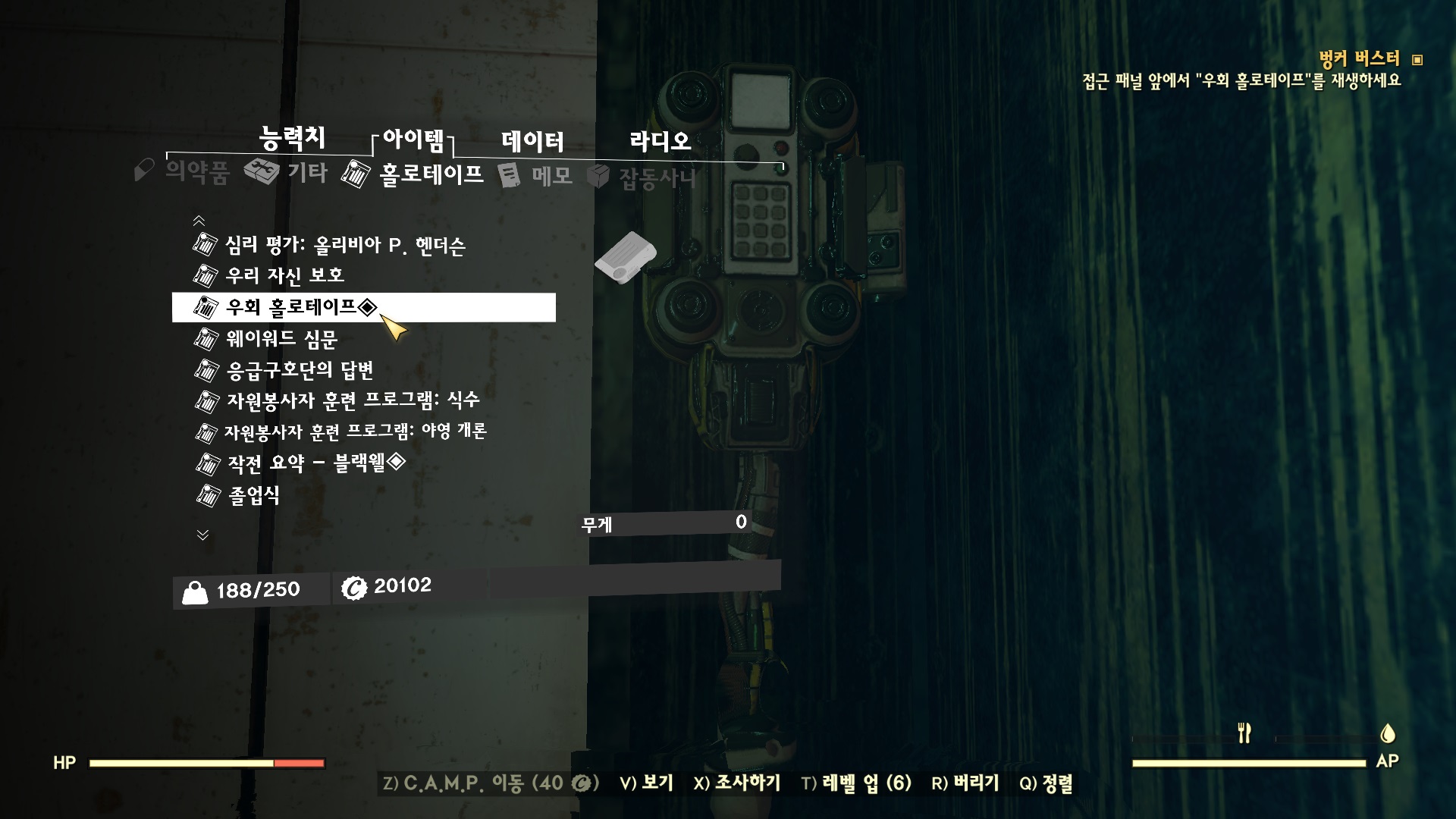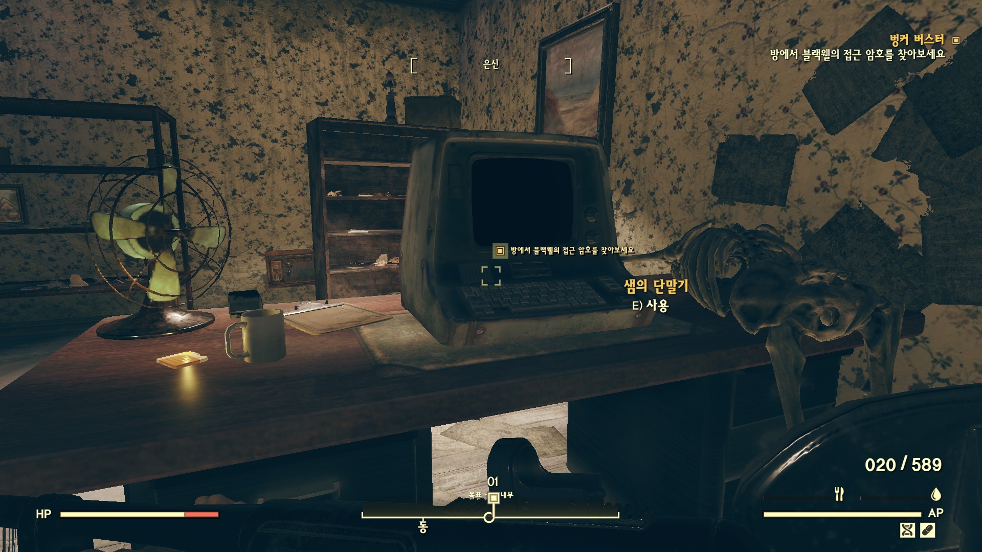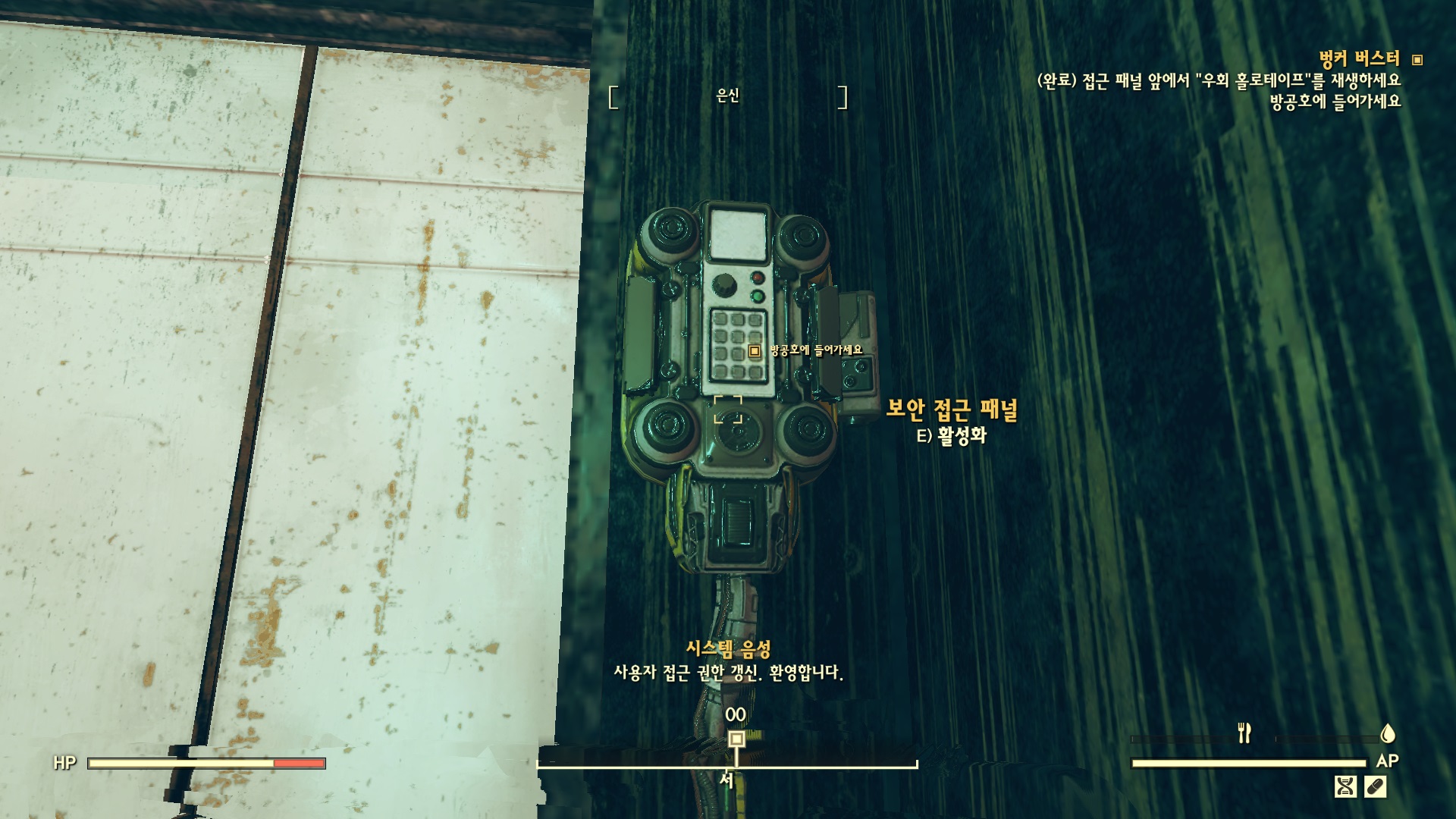 보안 접근 패널 앞에서 우회 홀로테이프를 재생하면 사용자 접근 권한을 얻게 된다. 샘 아저씨 벙커로 내려가자.