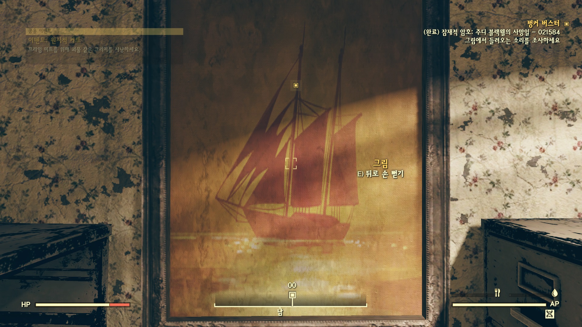 배가 그려진 그림 뒤에서 소리가 나고, 그림을 조사하면 '화이트스프링에 오신 것을 환영합니다' 홀로테이프와 '의회 접근 카드'를 얻게 된다.