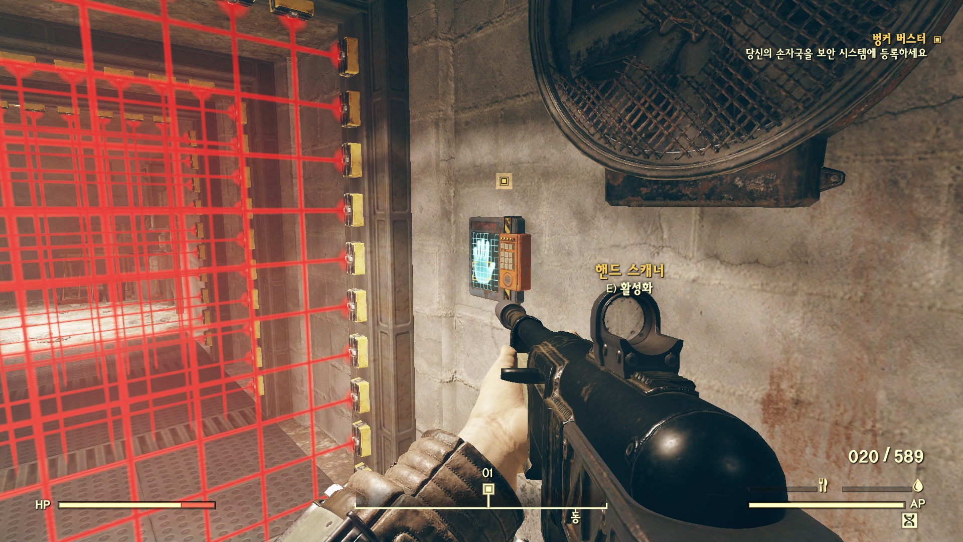 핸드 스캐너를 활성화 하면 보안 시스템에 등록하게 되고 안으로 들어갈 수 있다.