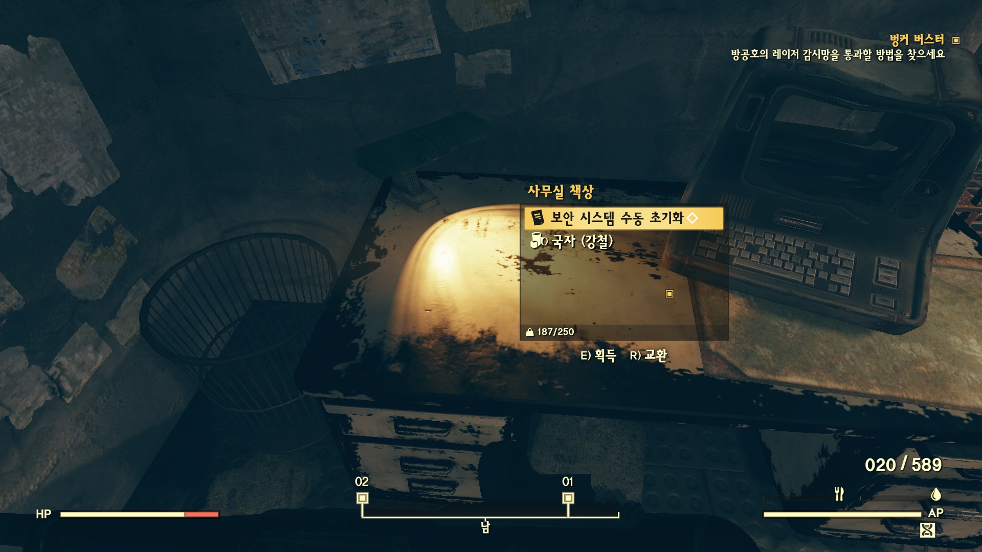 책상 안에 '보안 시스템 수동 초기화'를 발견하게 된다. 이걸 얻게 되면 초기화 하는 방법이 표시된다. 순서는 상관없다.