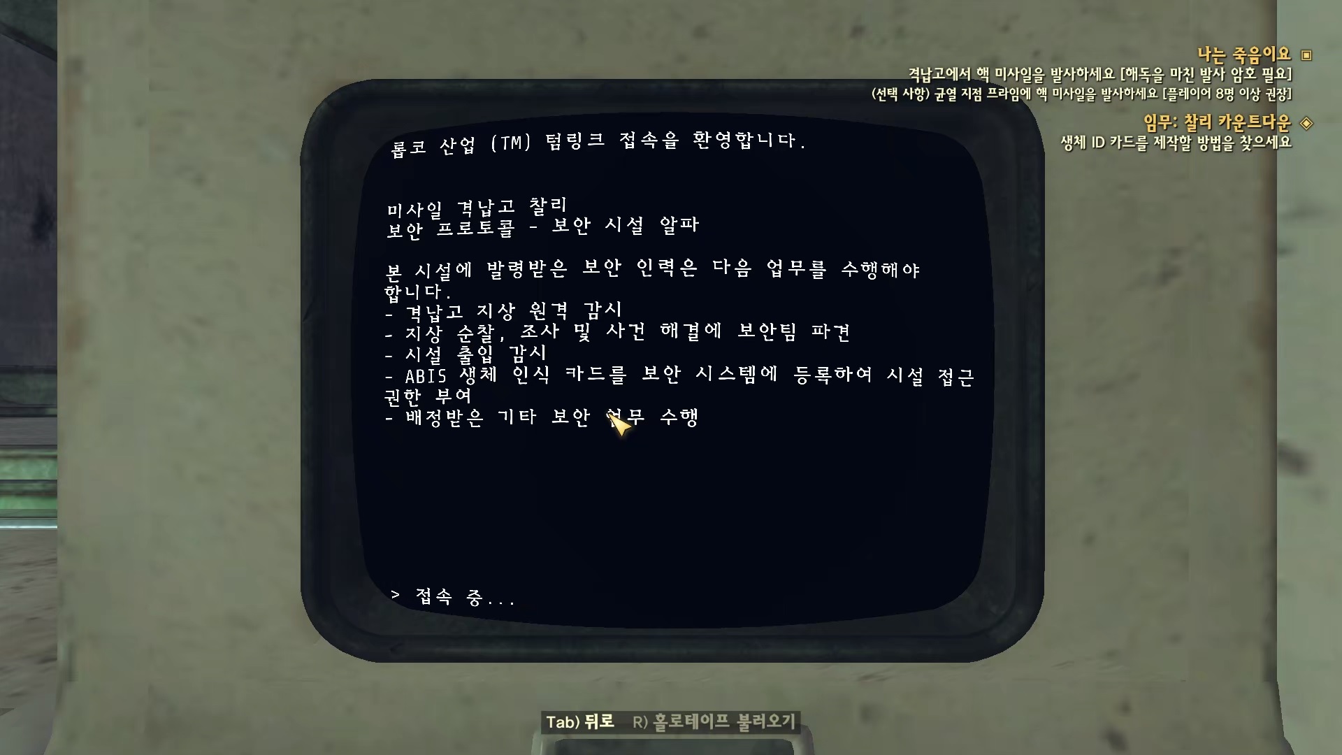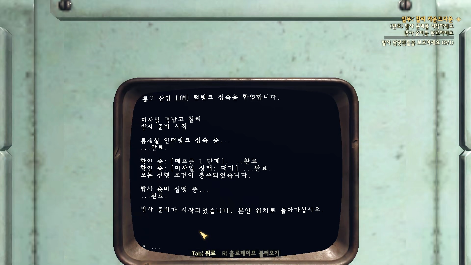 발사 준비가 끝나면 퀘스트는 끝이난다. 남은건 이제 핵미사일 발사뿐!