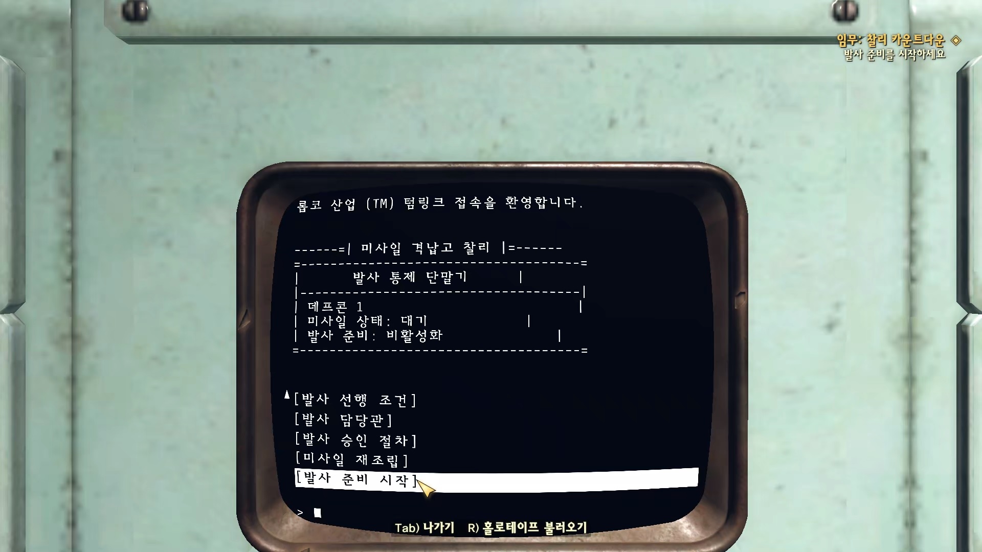 통제실의 발사 통제 단말기에 접속해서 '발사 준비 시작'을 선택하자.