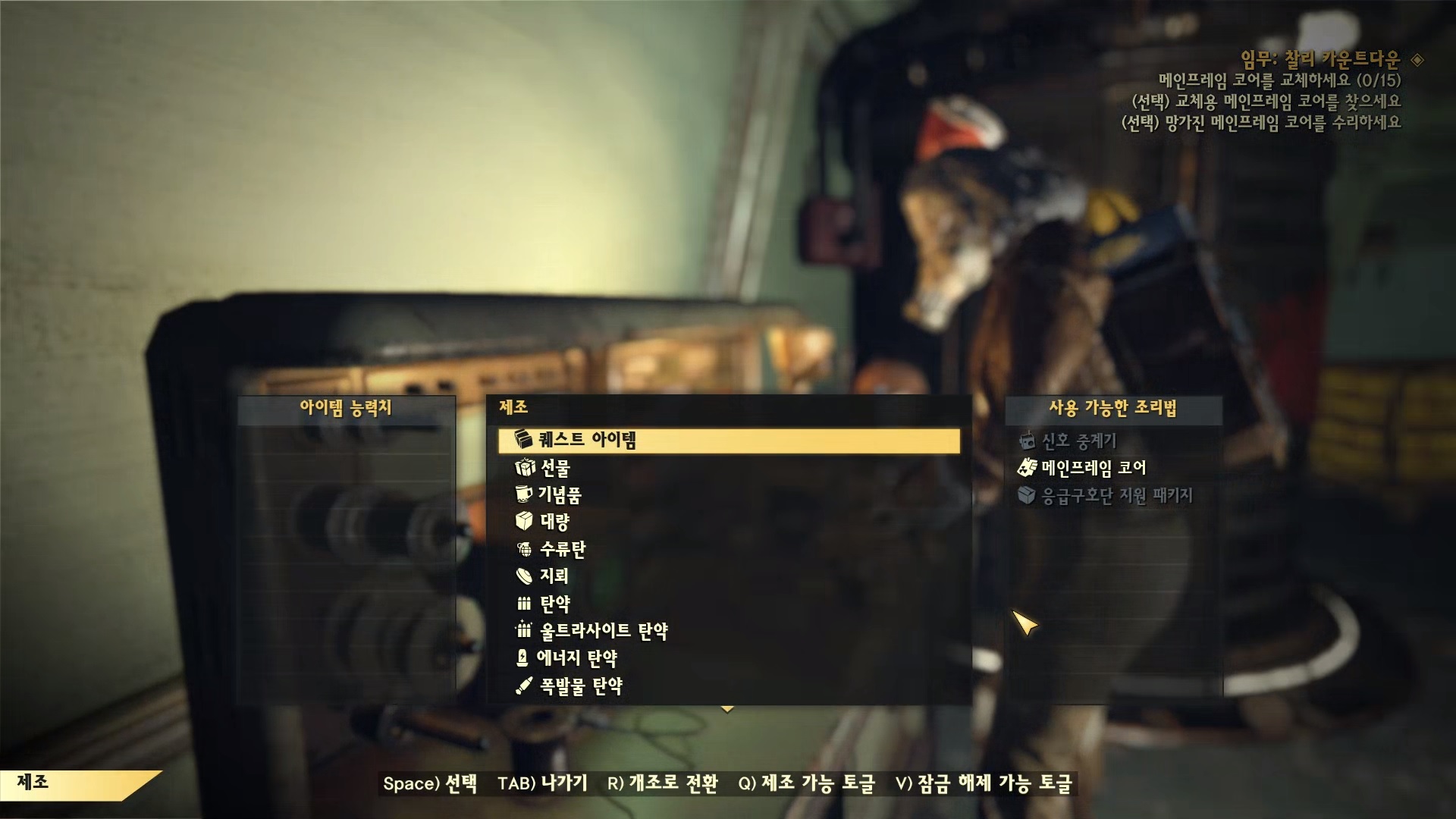 망가진 메인프레임 코어 15개를 챙긴다.