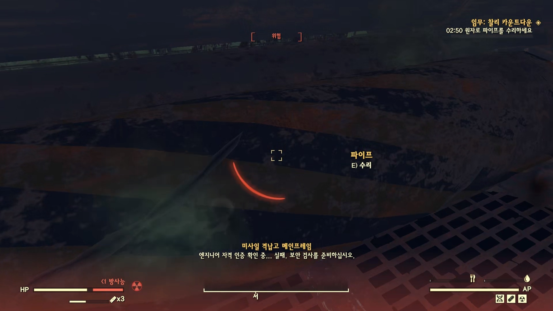 그러면 시간을 3분 주는데 이 시간안에 파이프를 수리하고 원자로 재가동까지 해야 한다. 아니면 실패하고 다시 해야 된다.