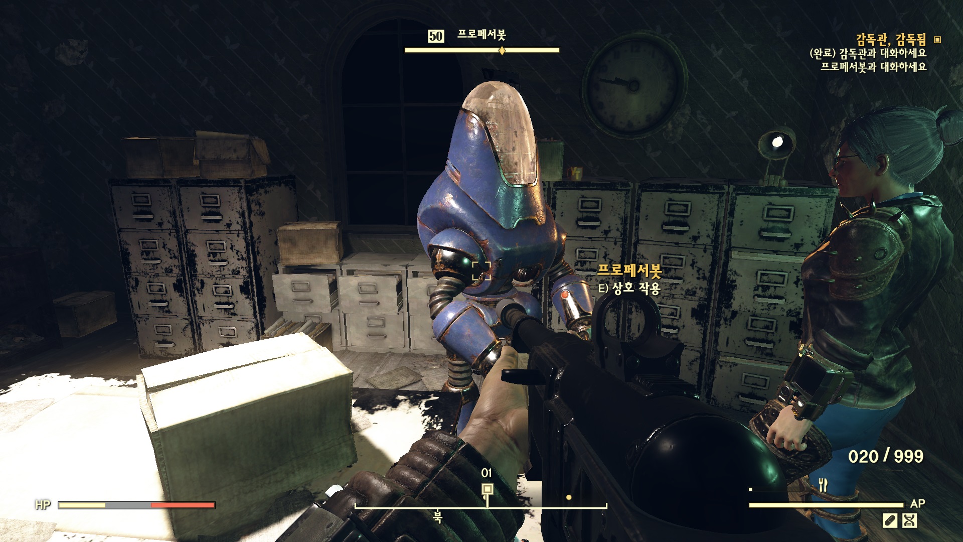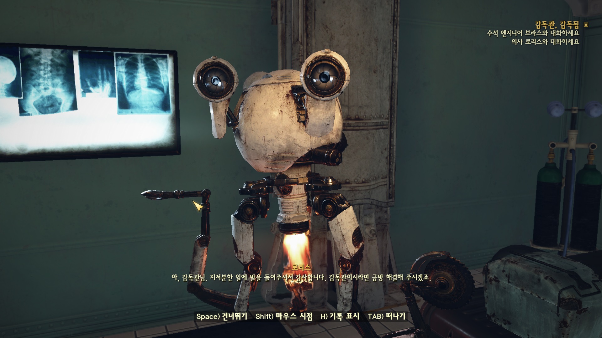 그러면 볼트 79를 뚫기 위해 크레이터 지도자 메그나 파운데이션 지도자 페이지와 대화를 하라고 한다. 둘중 한 사람과 대화를 하면 퀘스트는 완료된다.