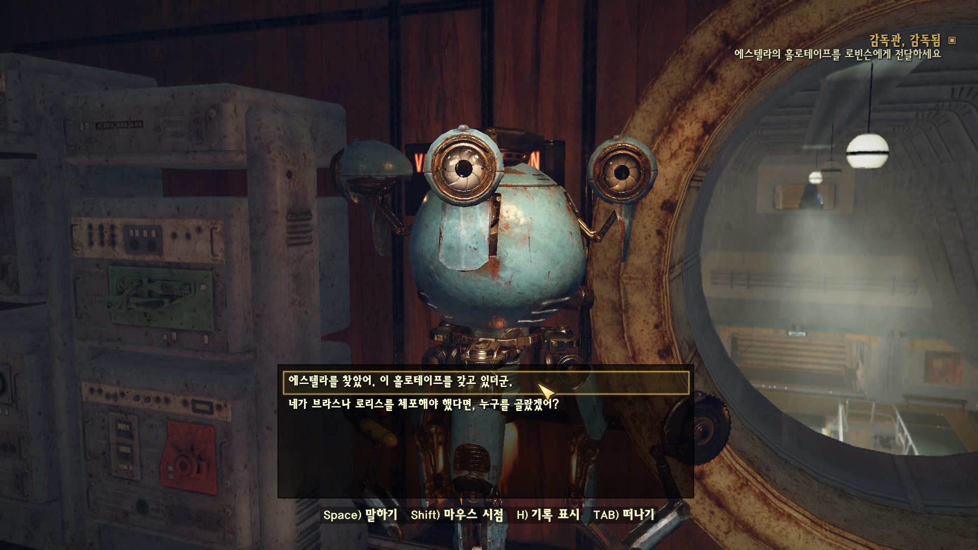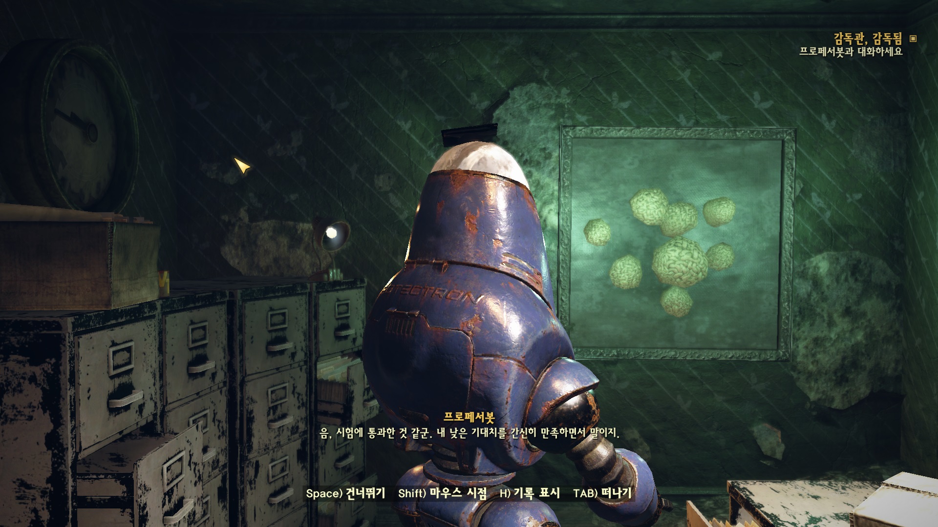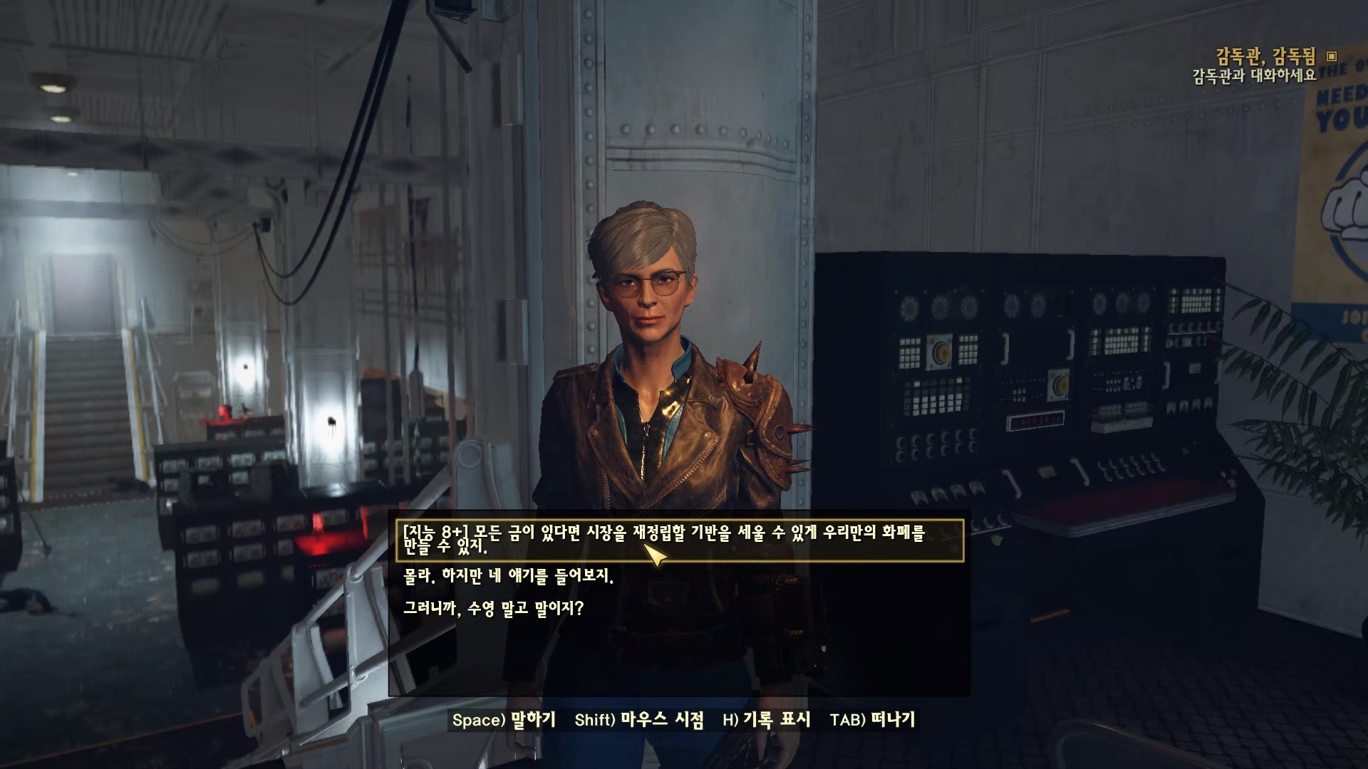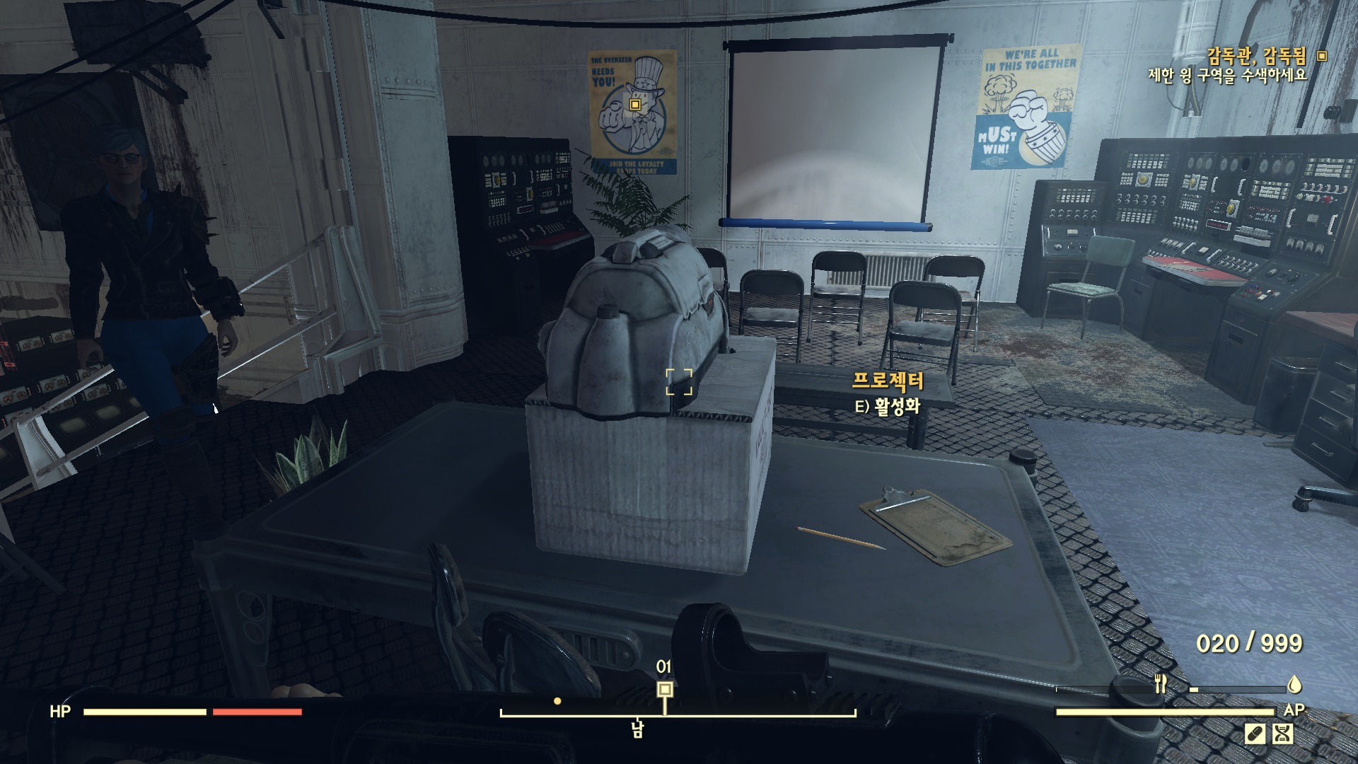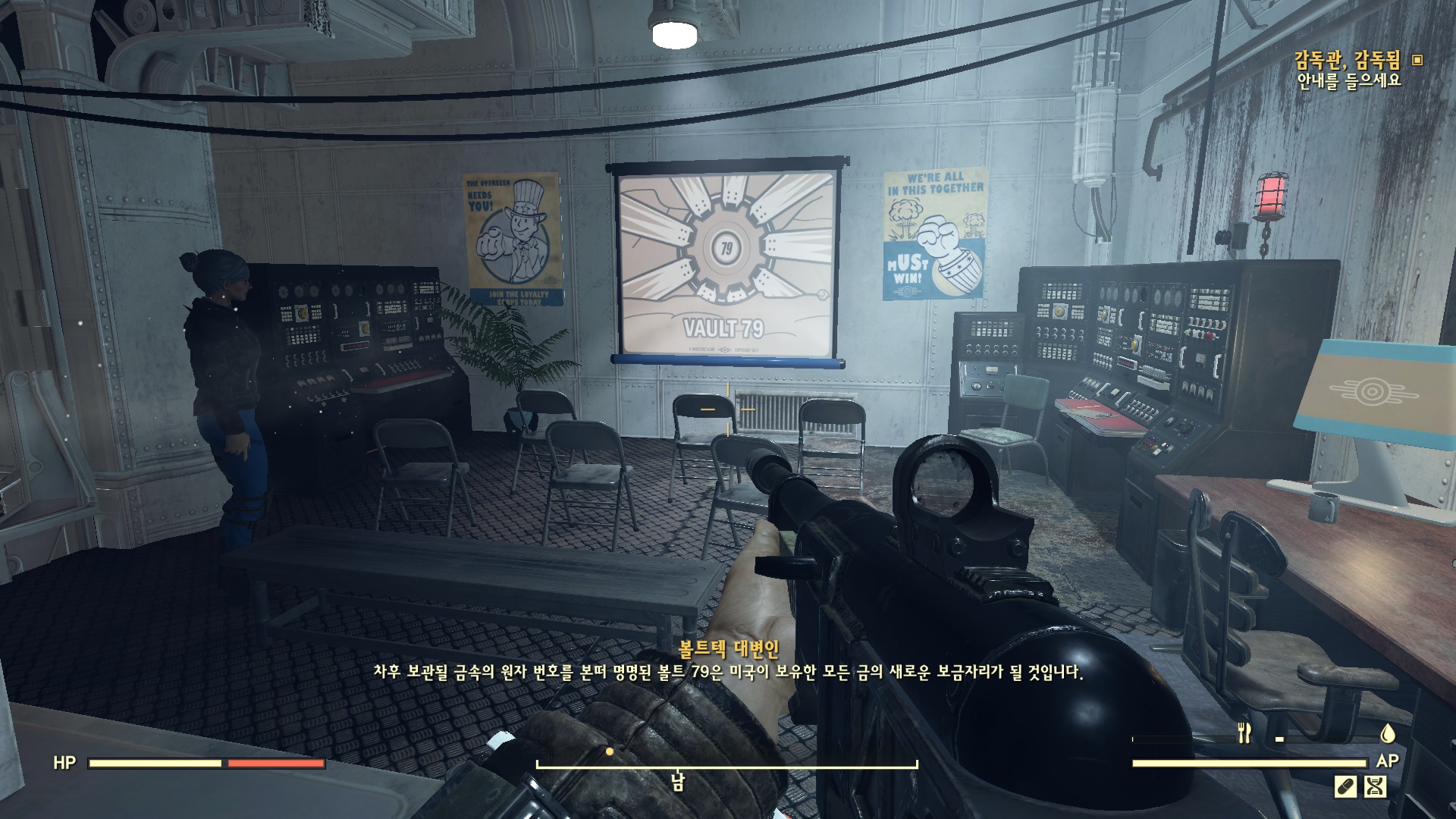 프로젝터를 켜면 볼트 79에 대한 비밀을 알게 된다. 그것은 바로 새로운 금괴 보관소라는 것. 다 보고 나서 감독관과 대화하자.