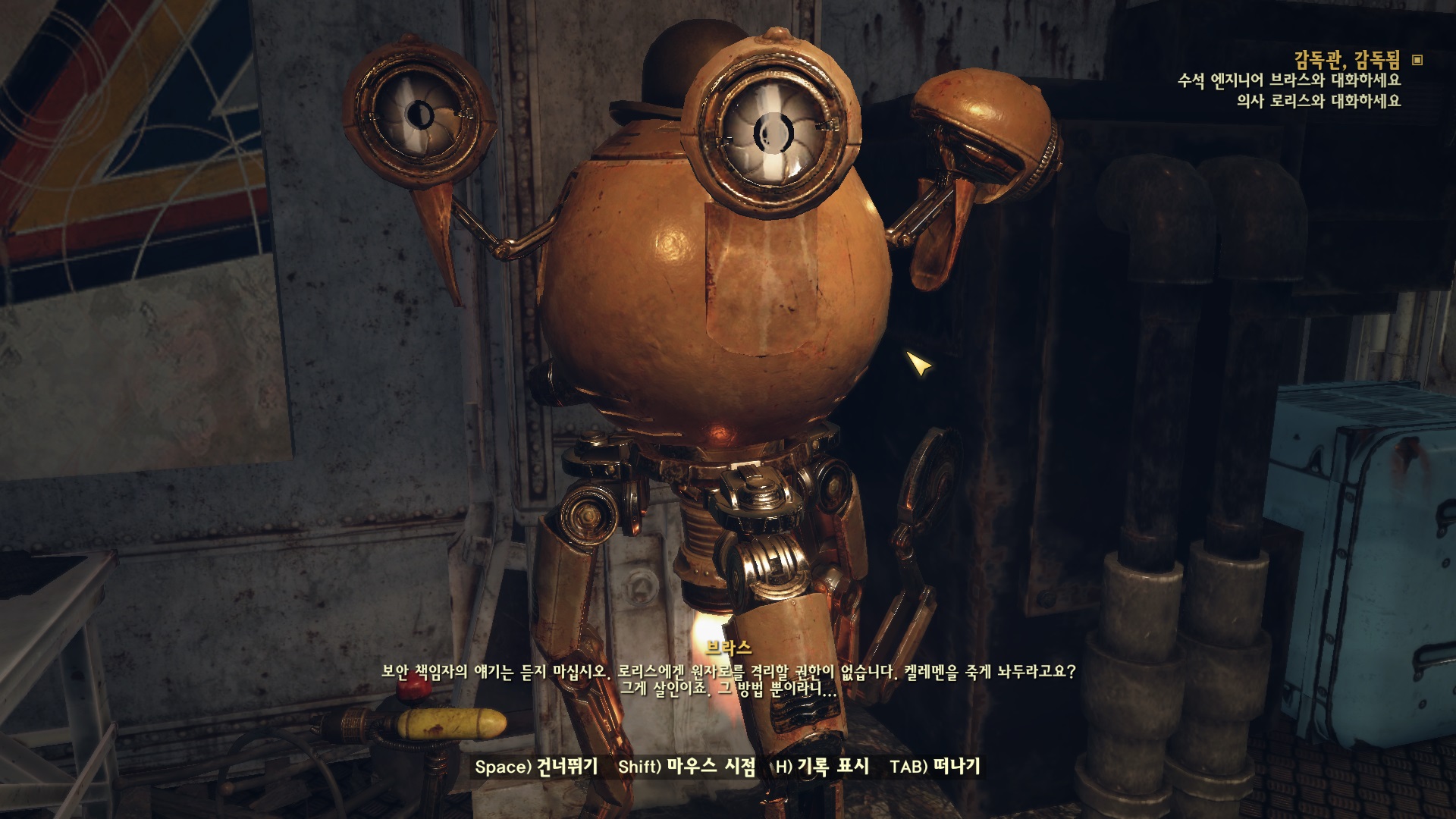평화롭게 해결 해야 하기에 로리스와 대화해서 원자로 열쇠를 얻어내자. 매력 4+ 이면 얻을 수 있다.
