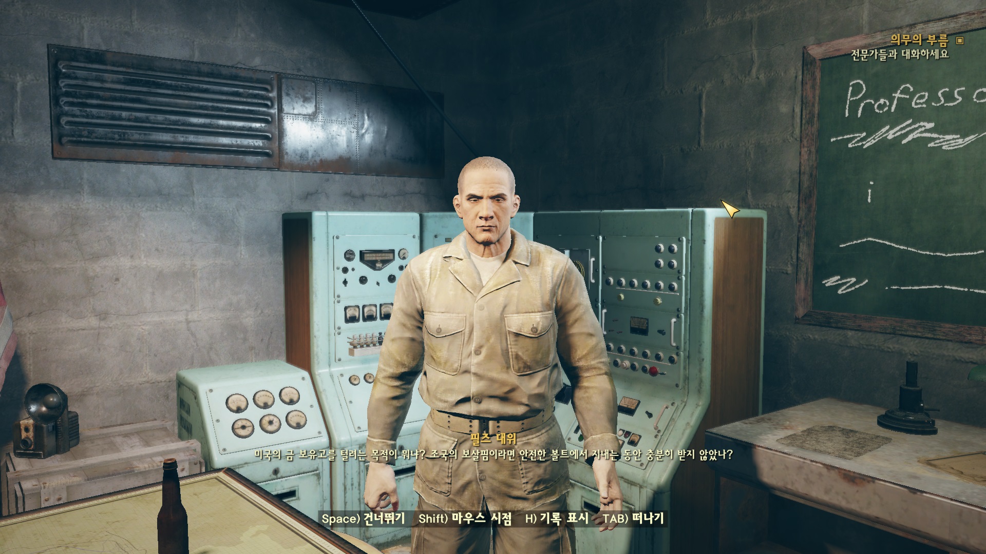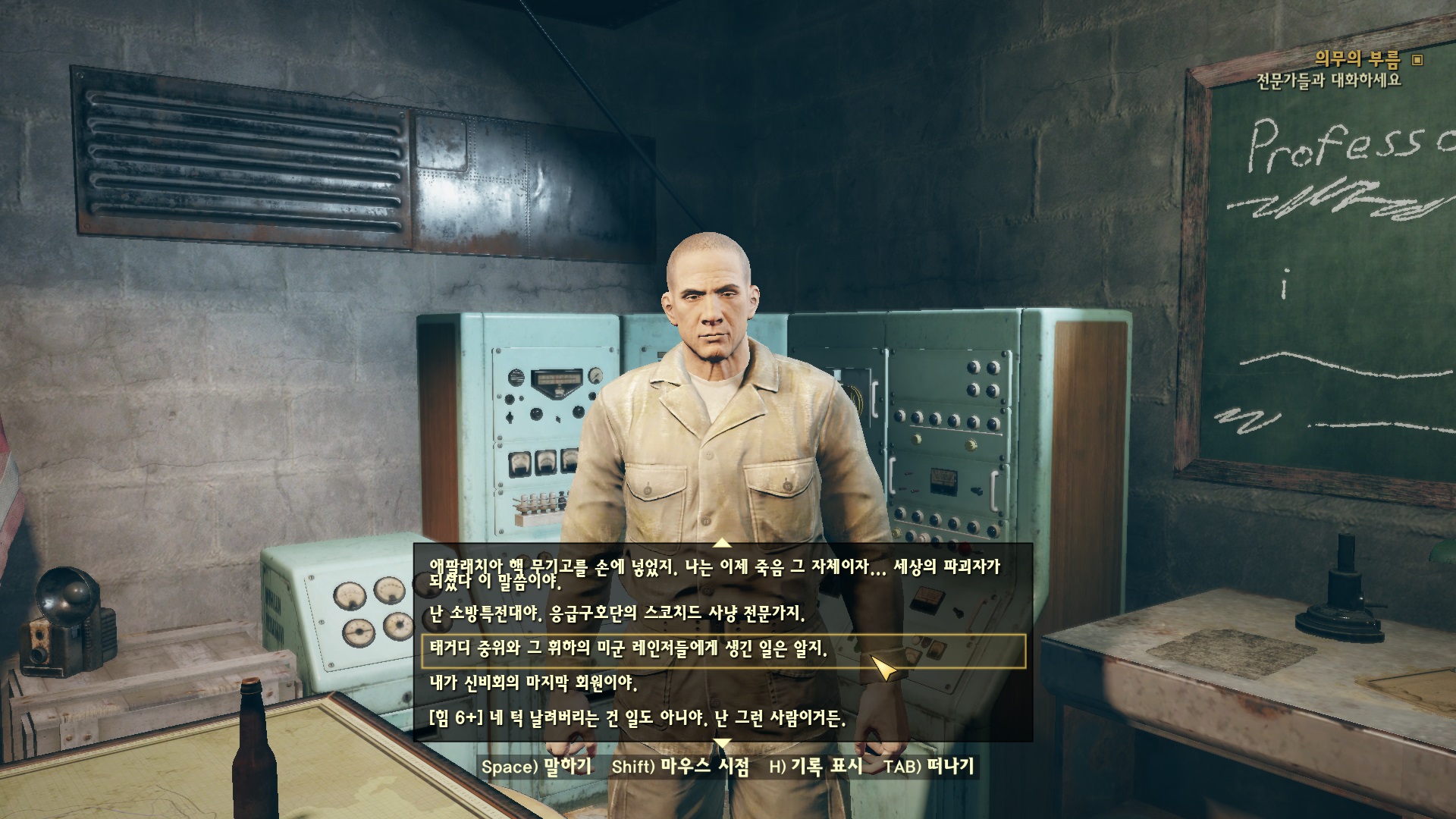 볼트 76, 소방특전대, 군인, 태거디 중위와 관련된 대화 중에서 선택한다. 태거디 관련 일을 선택하니 바로 수긍해버린다.