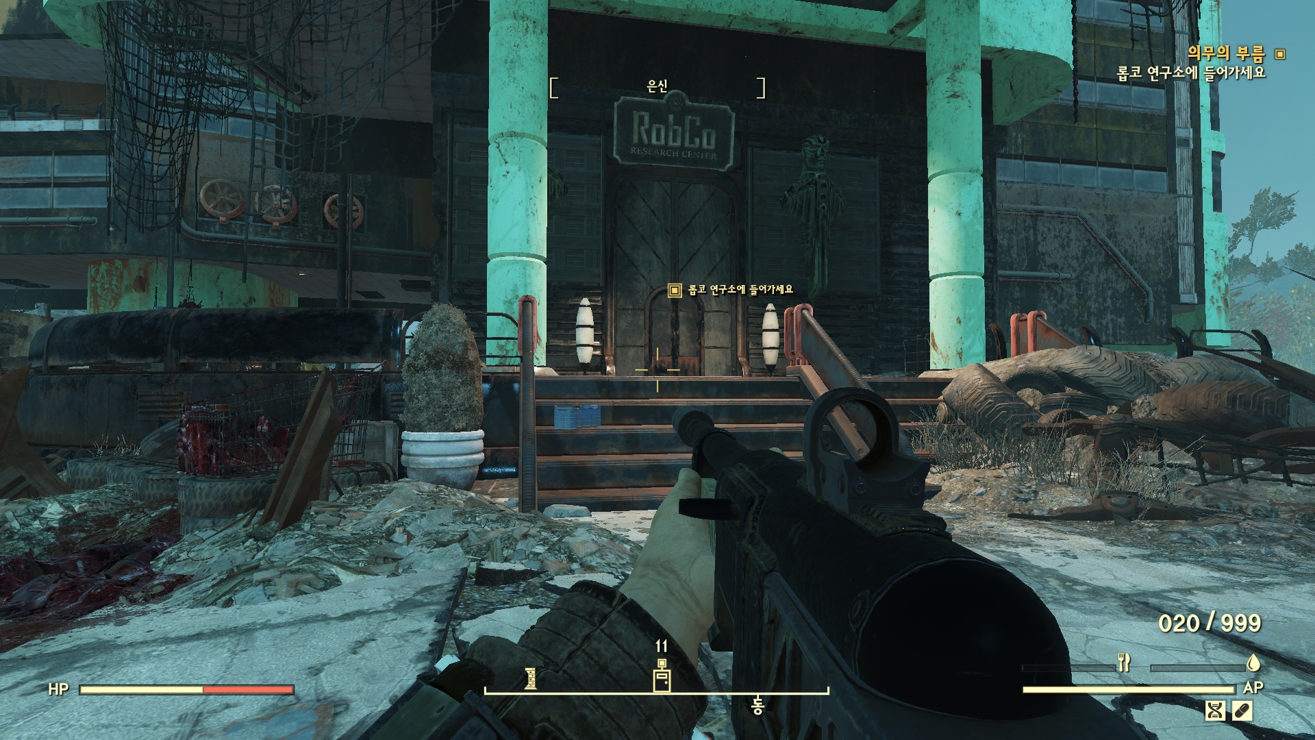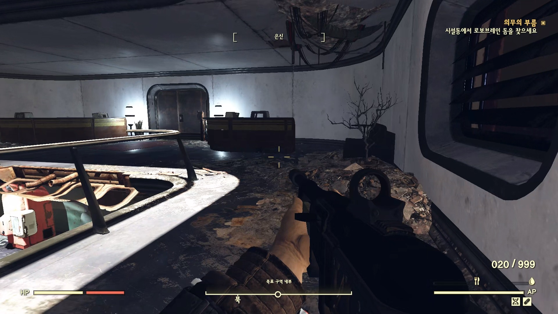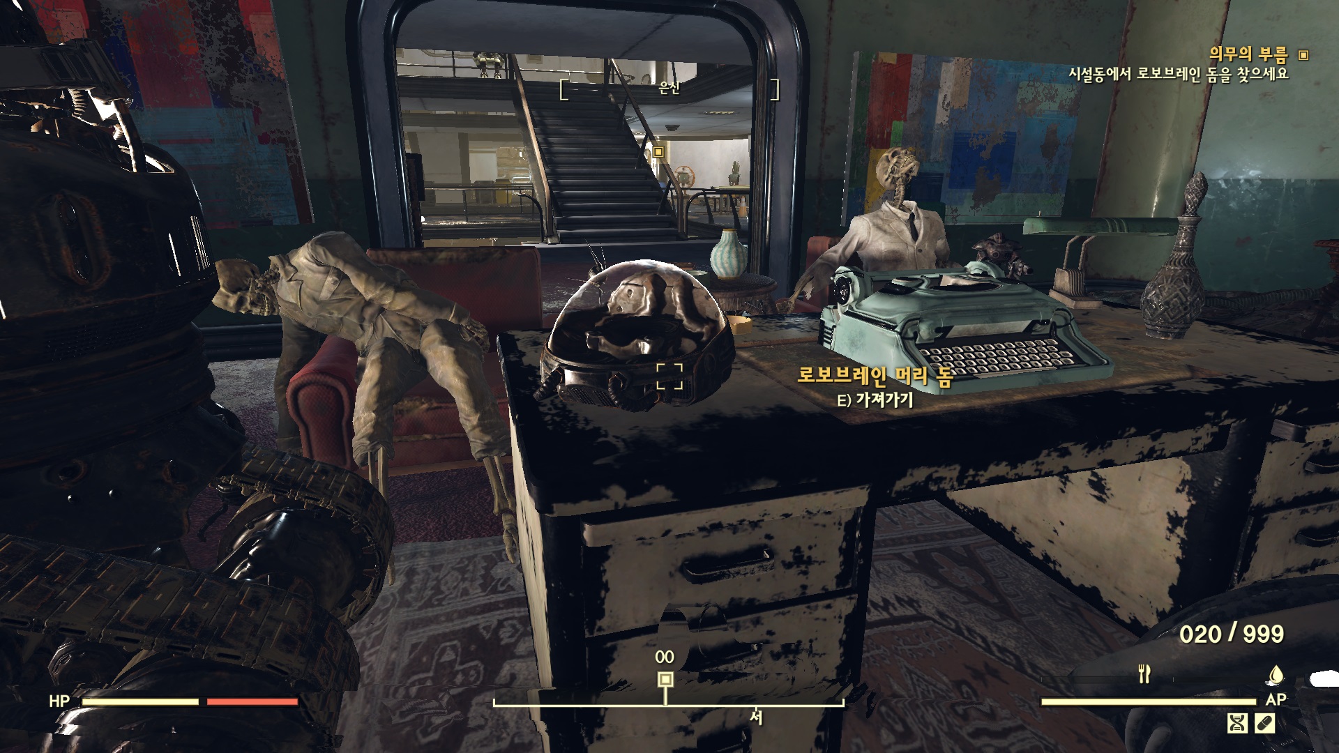 한층 올라서 접수대 사이 큰 문이 있다. 열고 들어가면 로보브레인 머리 돔이 있다. 챙기자.