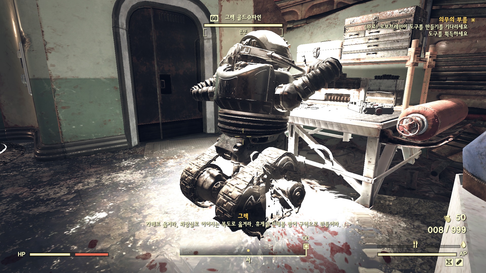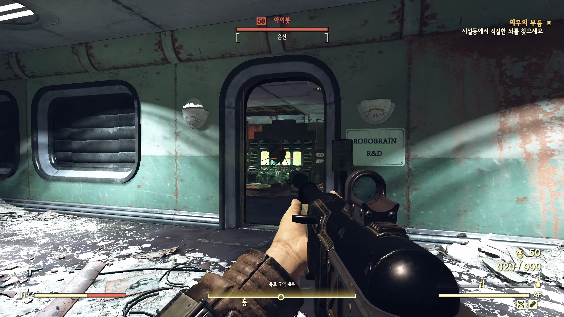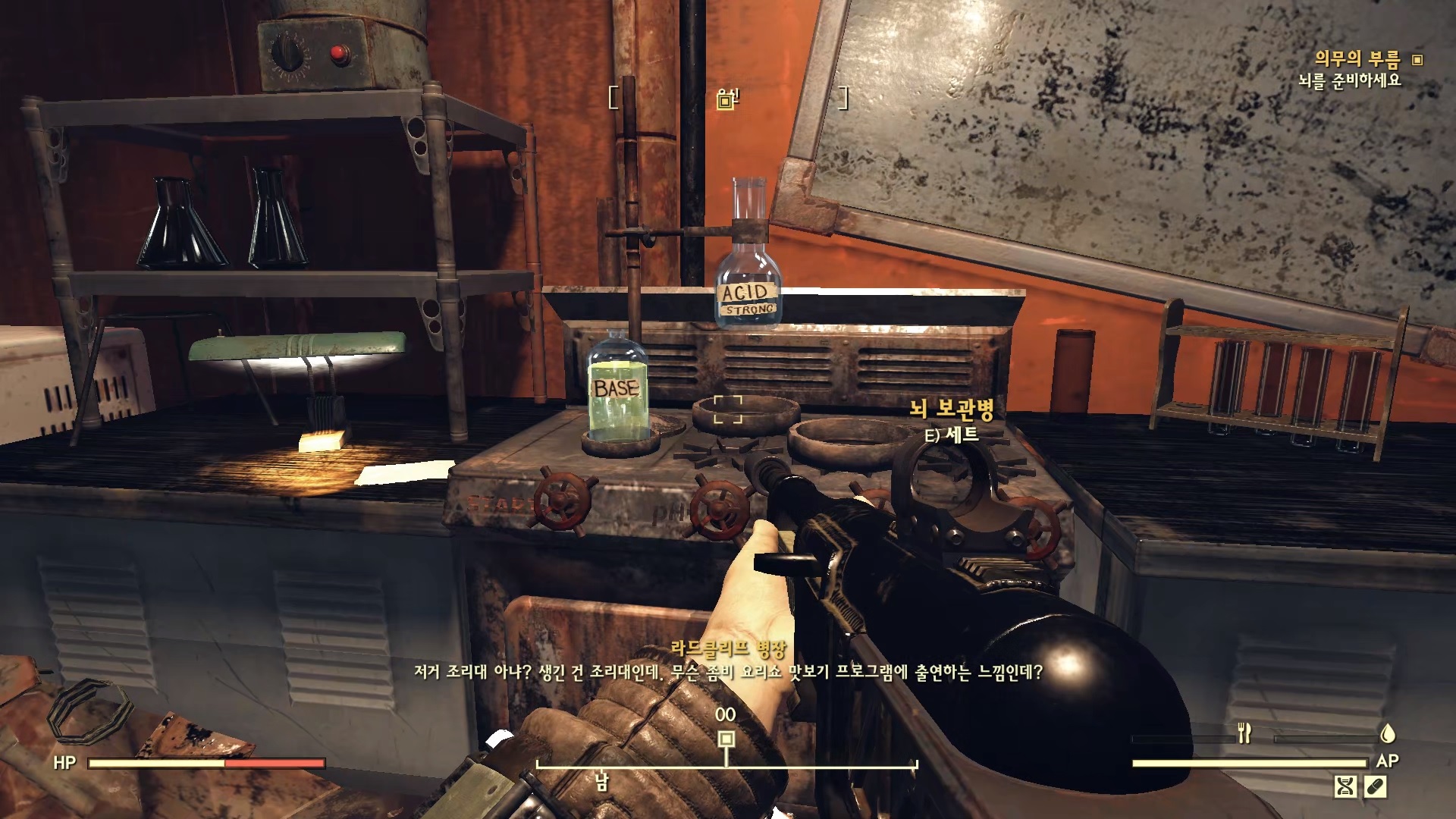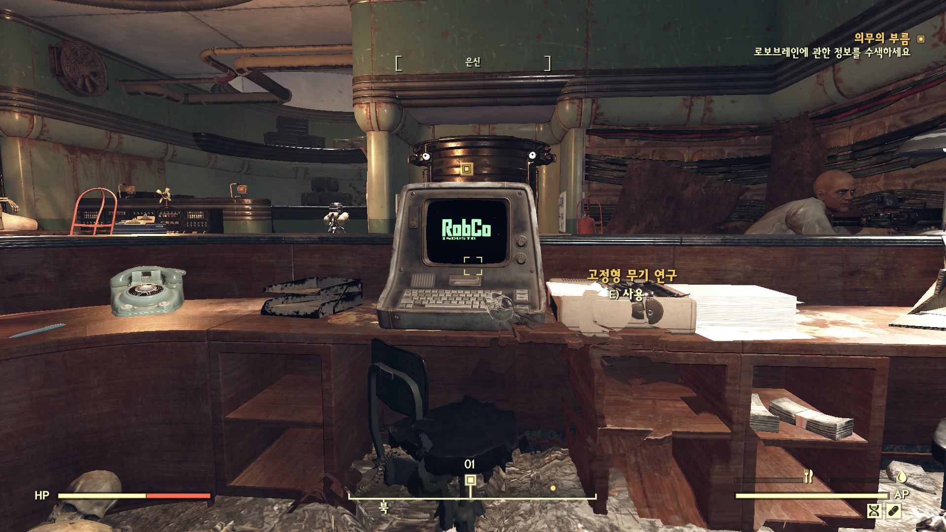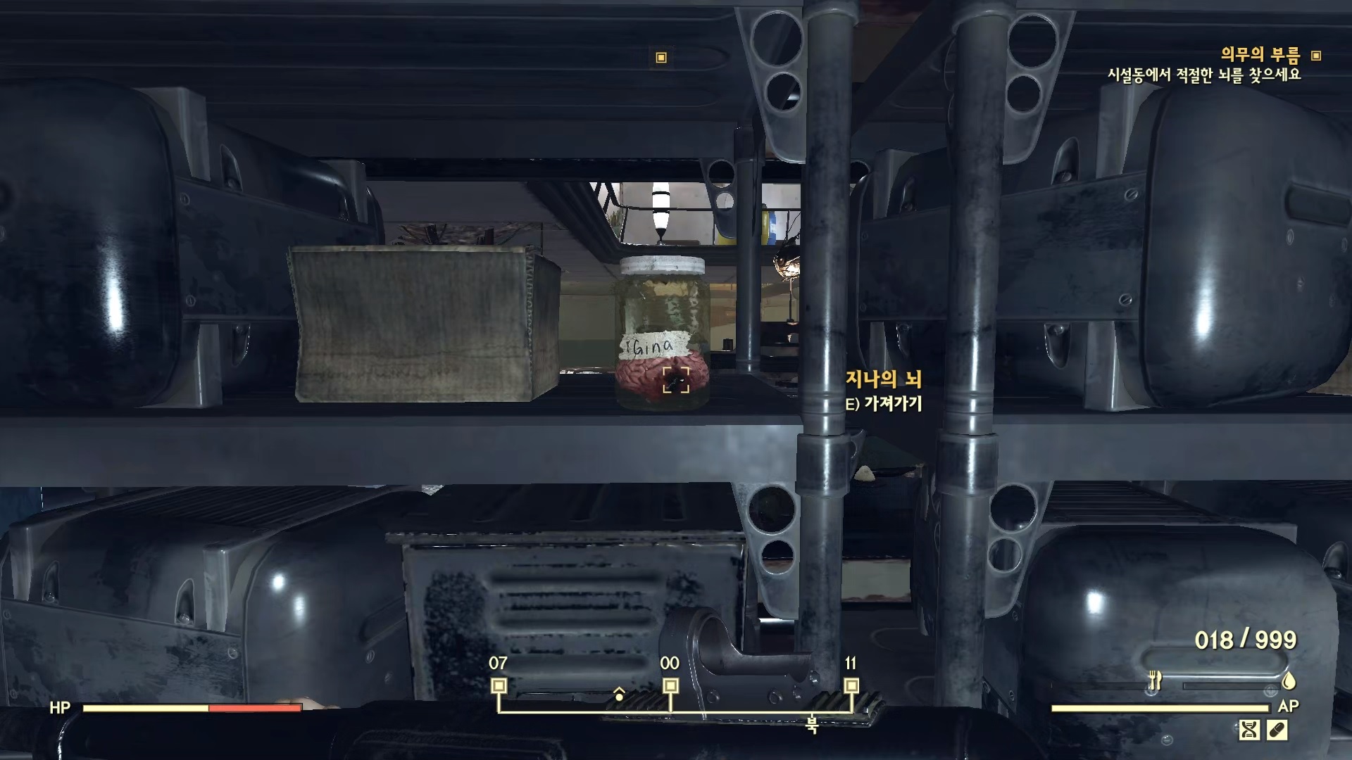 방을 나와서 바로 오른쪽의 문을 열고 들어가면 뇌가 없는 로보브레인이 있다. 여기에 뇌를 장착한다.