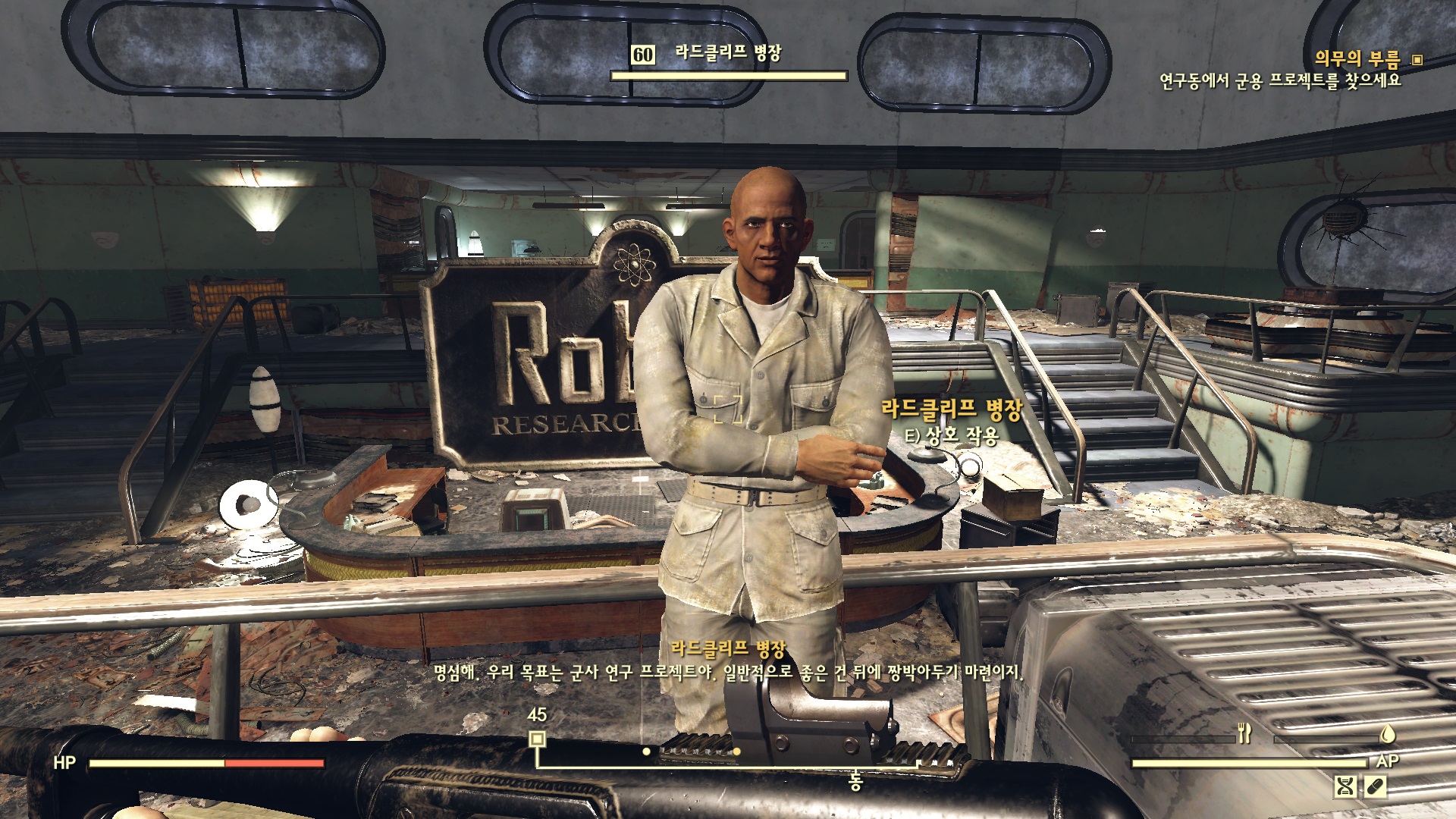 라드클리프가 포탑에 대한 해결책이 있다면 롭코 연구소로 오라고 한다. 가서 대화를 하면 군사 연구 프로젝트를 찾으라고 한다.