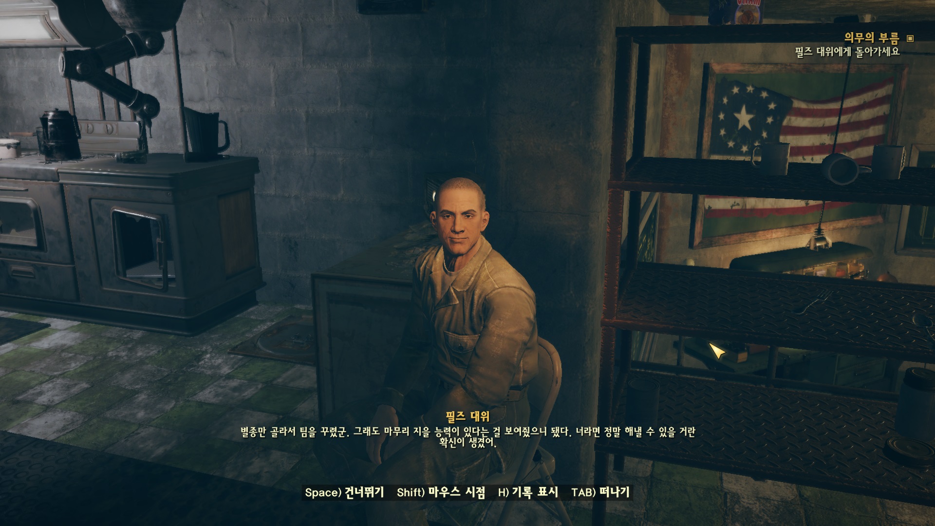 필즈 대위와 대화하면 이제 확신을 가지게 된다. 나를 따르라!