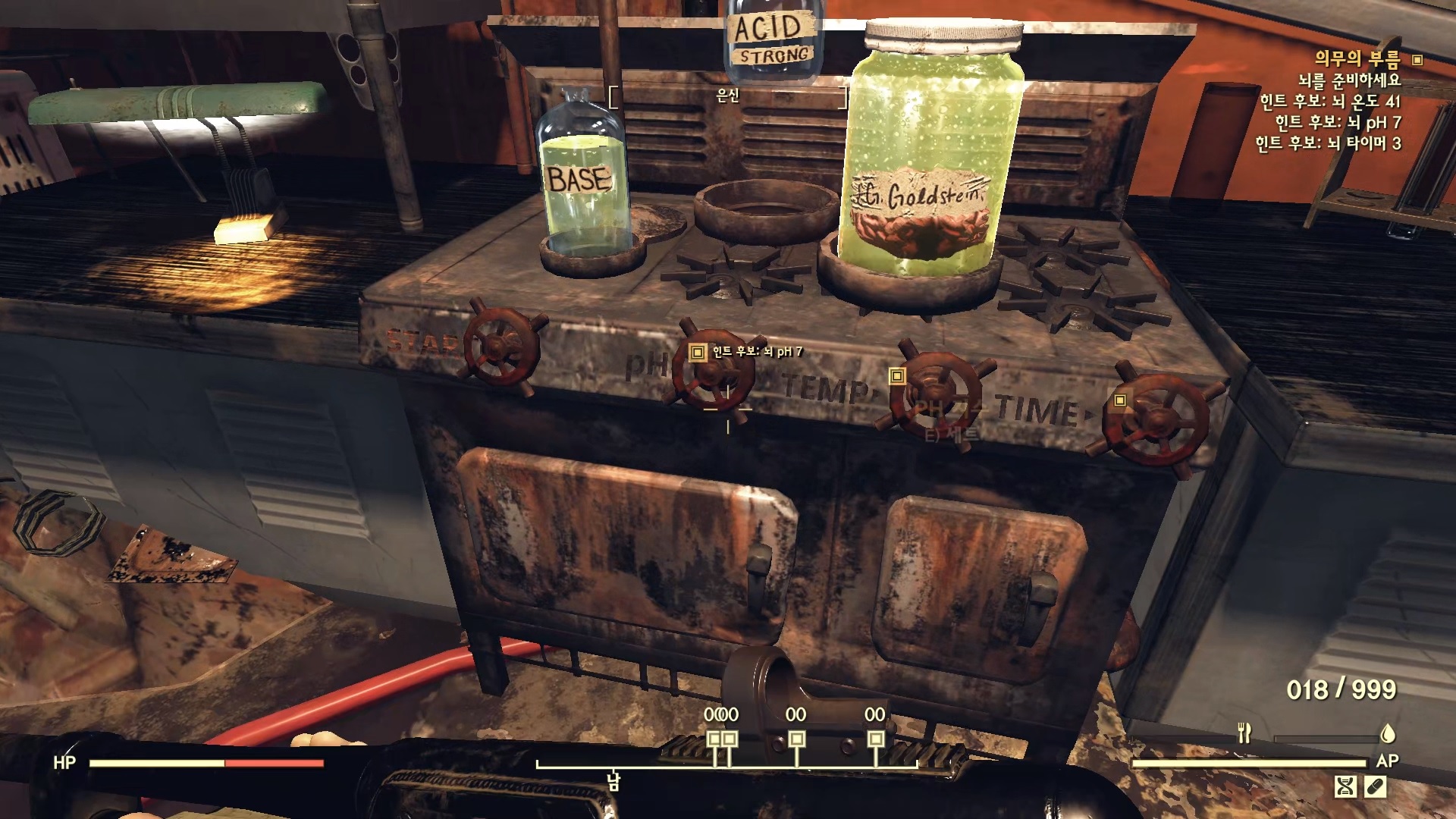 pH 레버를 클릭 7, Temp 레버를 클릭 41, Time 레버를 클릭 3, 그리고 마지막에 START 레버를 클릭하면 된다.