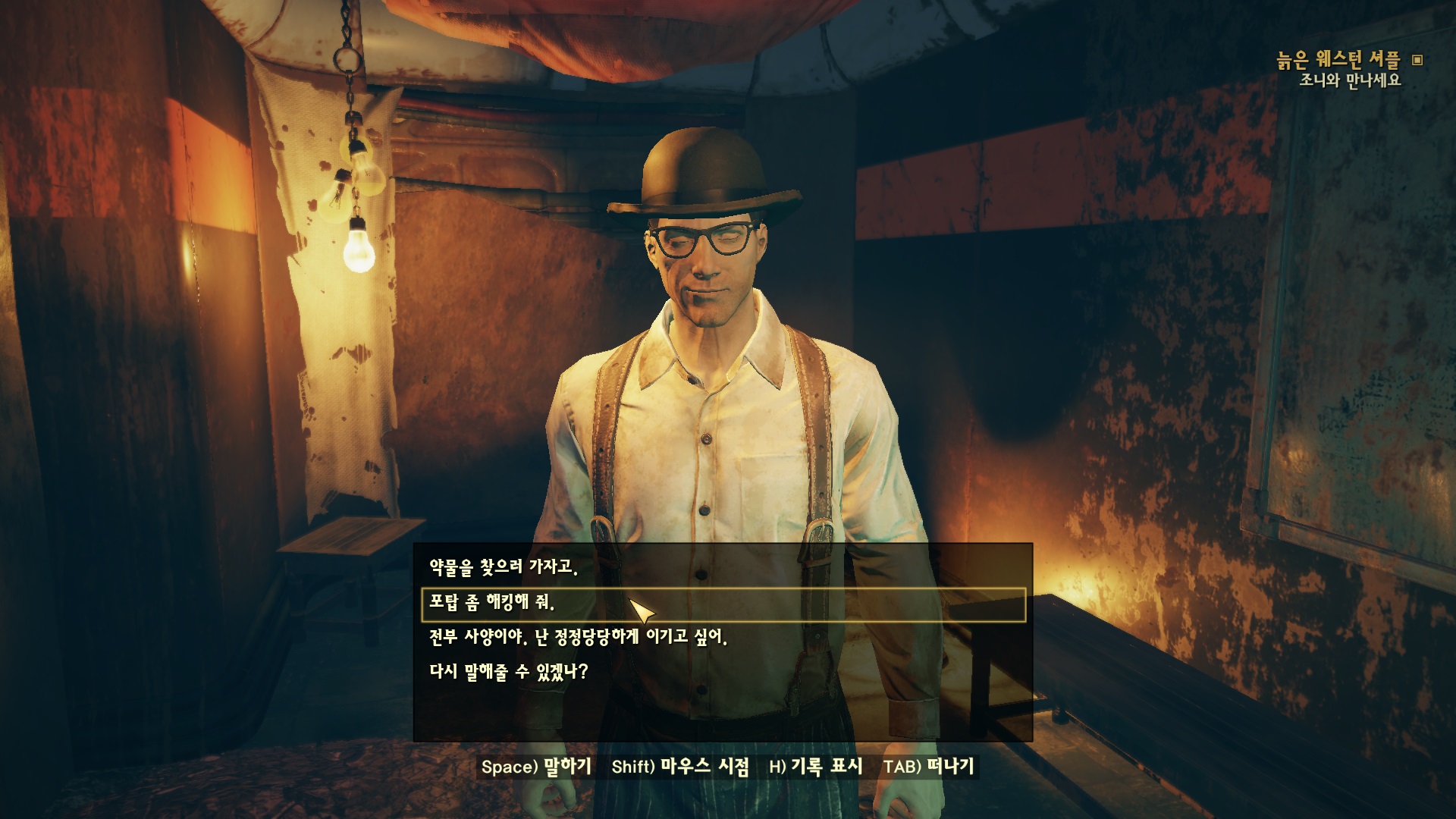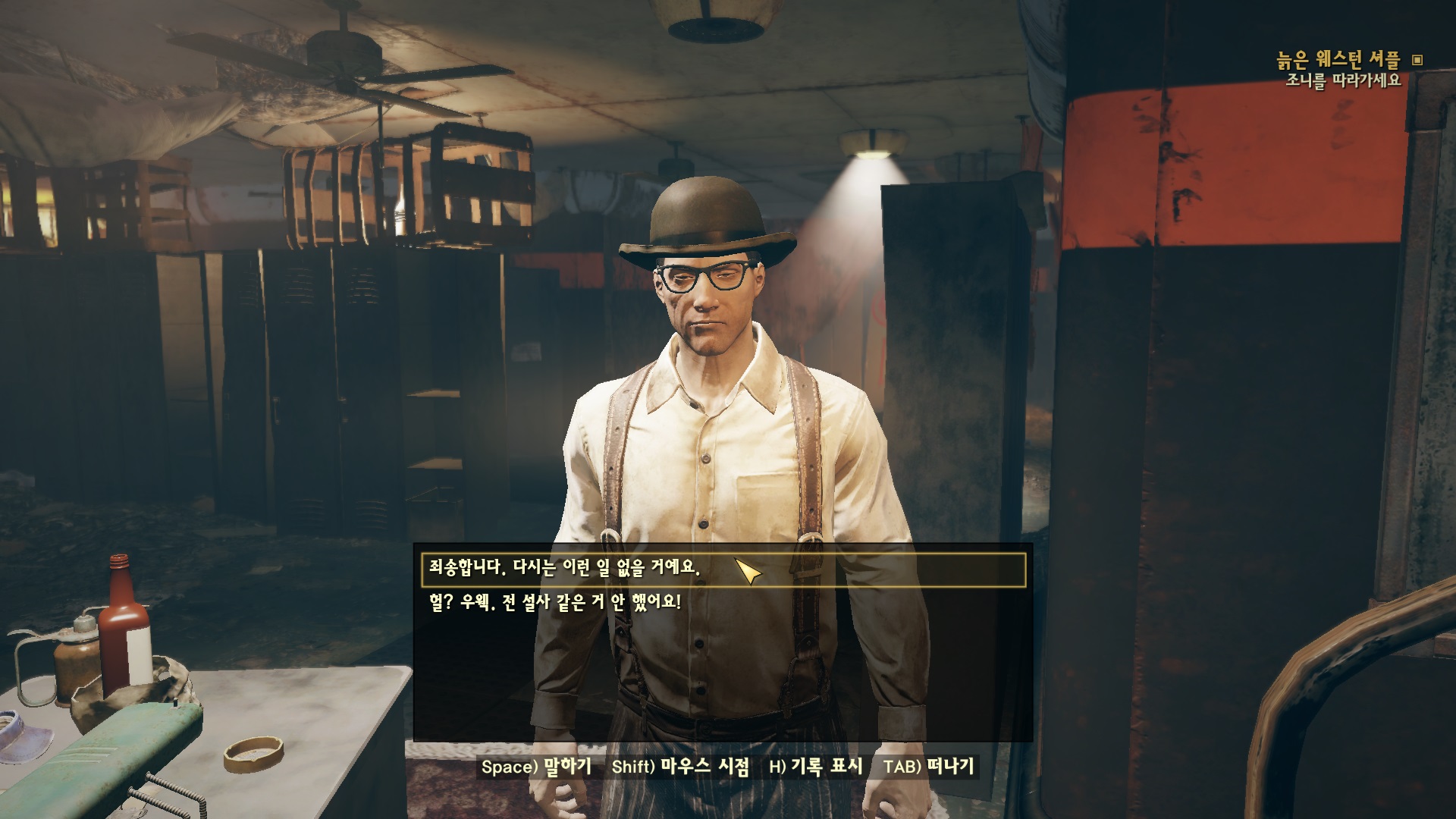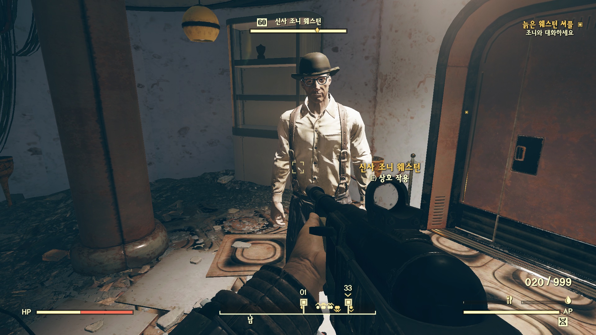 크레이터 내부에 잘 차려 입은 신사 조니 웨스턴과 대화하자. 묻지도 따지지도 않고 부탁을 들어준다는 말을 처음부터 했지만 속셈은 있었다. 자기 친구 할이 노예 신세인데 구하는데 도움을 달라고 한다. 뭐야. 생각보다 좋은 일이네. 바로 수락.