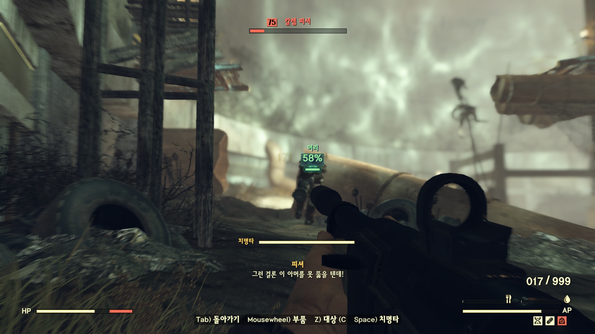 레이더 파워 아머를 입고 날뛰는 칼렙 피셔를 처치하고 '레브의 은신처 열쇠'를 얻자.