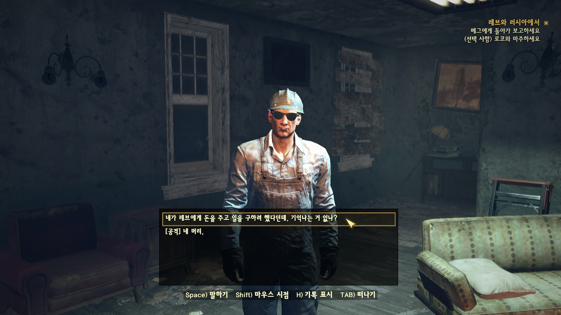 레브에게 시킨 일에 대해 묻자. 그 다음 선택지는 없더라. 공격.. 처치하면 레이더 평판이 오른다.