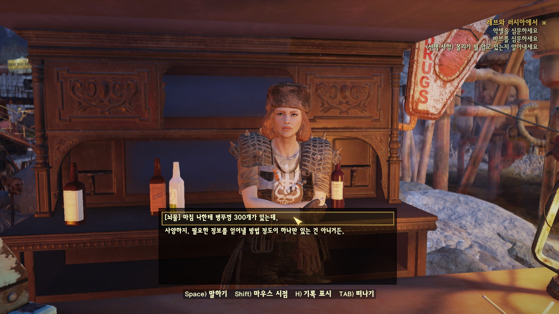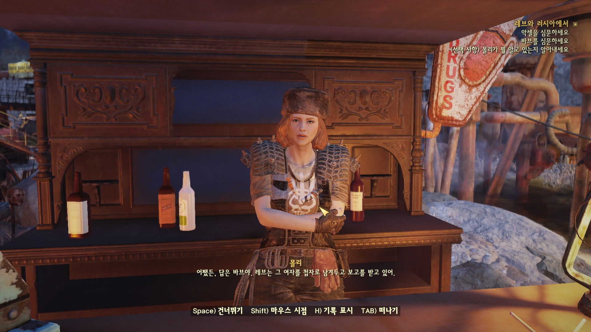 몰리에게 300캡을 쥐어주고 (매력 8+면 200캡에도 가능) 누가 범인인지 말해달라고 하면 바브를 첩자로 두고 있다고 한다. 몰래 엳들었다고 하는데... 이제 바브에게 가자.
