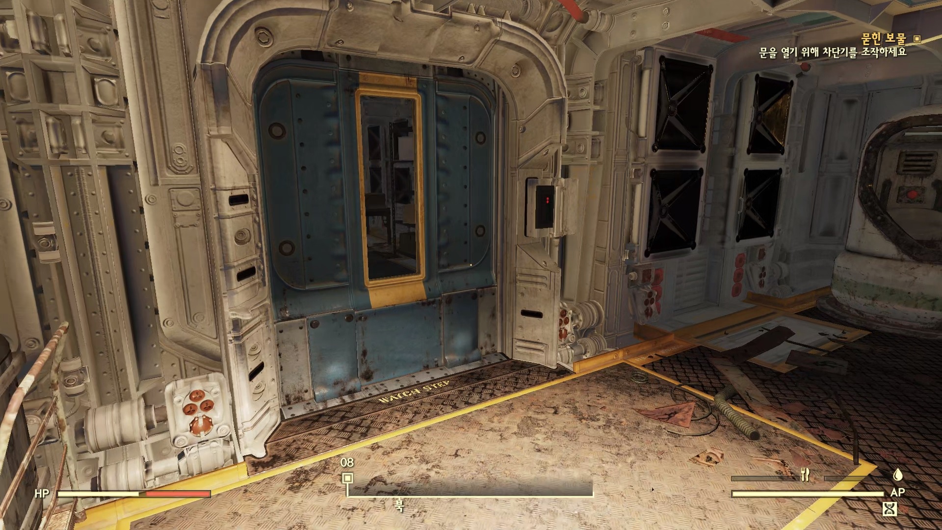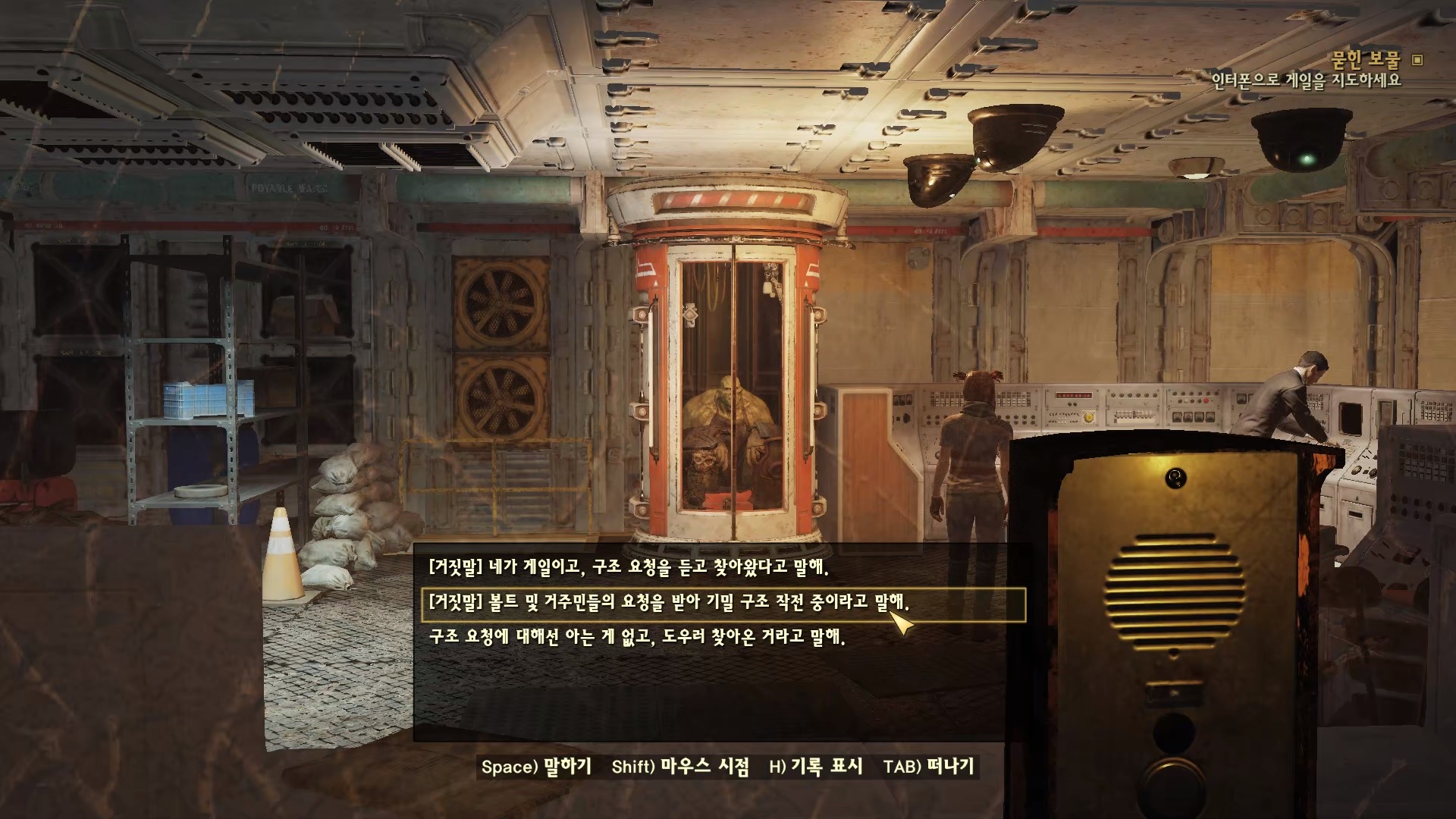 이렇게 되야 정상이다. 재시작 안하고도 풀려서 다행이네. 재식이면 볼트 문여는것부터 해야되니깐. 이 상태에서 인터콤으로 조니와 대화한다. 생체 감지 시스템이 있는 범죄 경력이 있는 조니를 인식해서 이렇게 가둬 버린것.