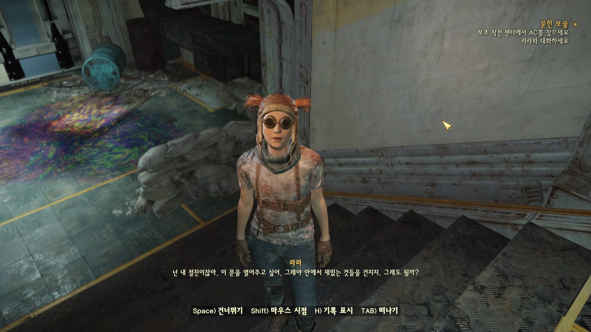 주거지역 복도 끝에 잠긴 문 앞에 도착하면 라라가 문을 열어주고 싶어한다. 열어 달라고 하자.