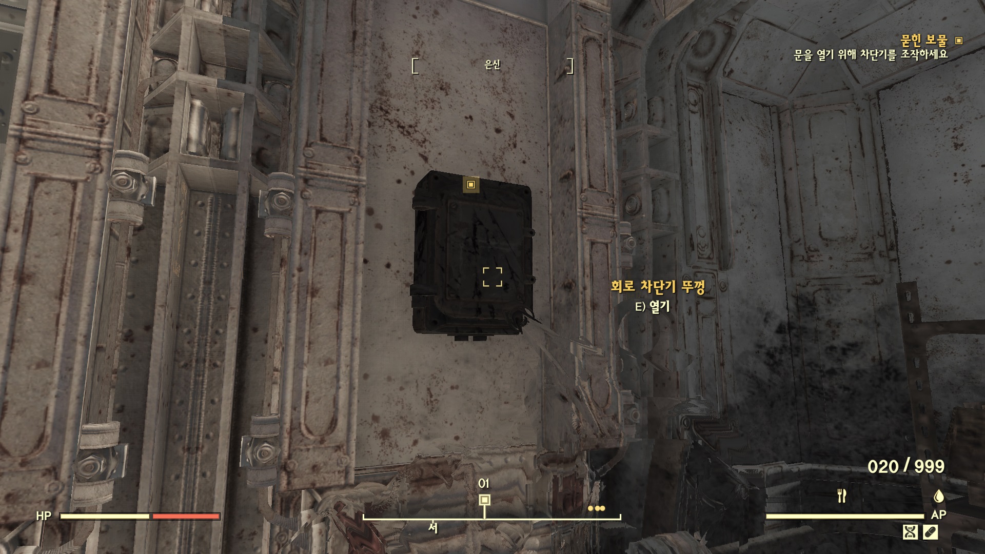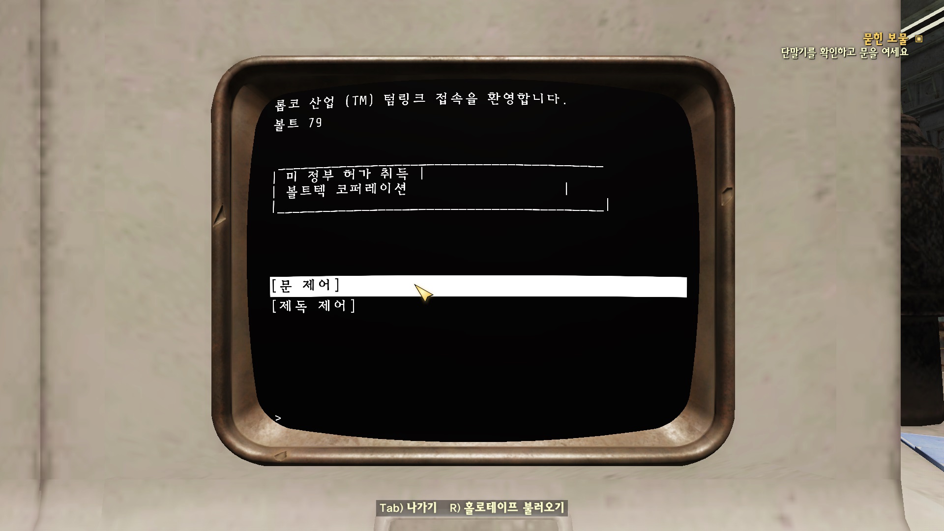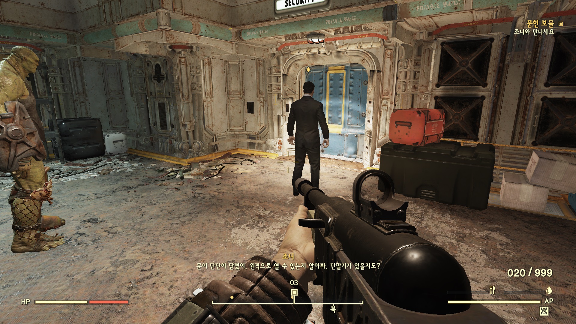 볼트 입구에서 레이저 포탑 때문에 조니가 이렇게 굳어 버린다. 이럴때는 답이 없다. 새로 시작해야 된다.