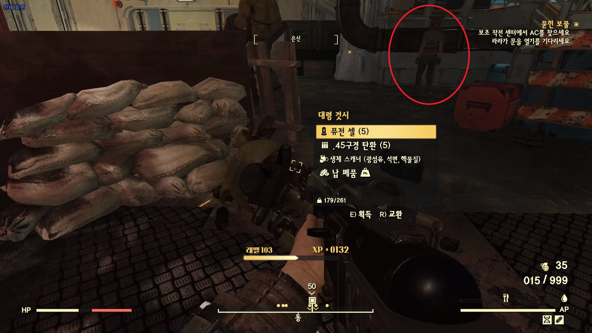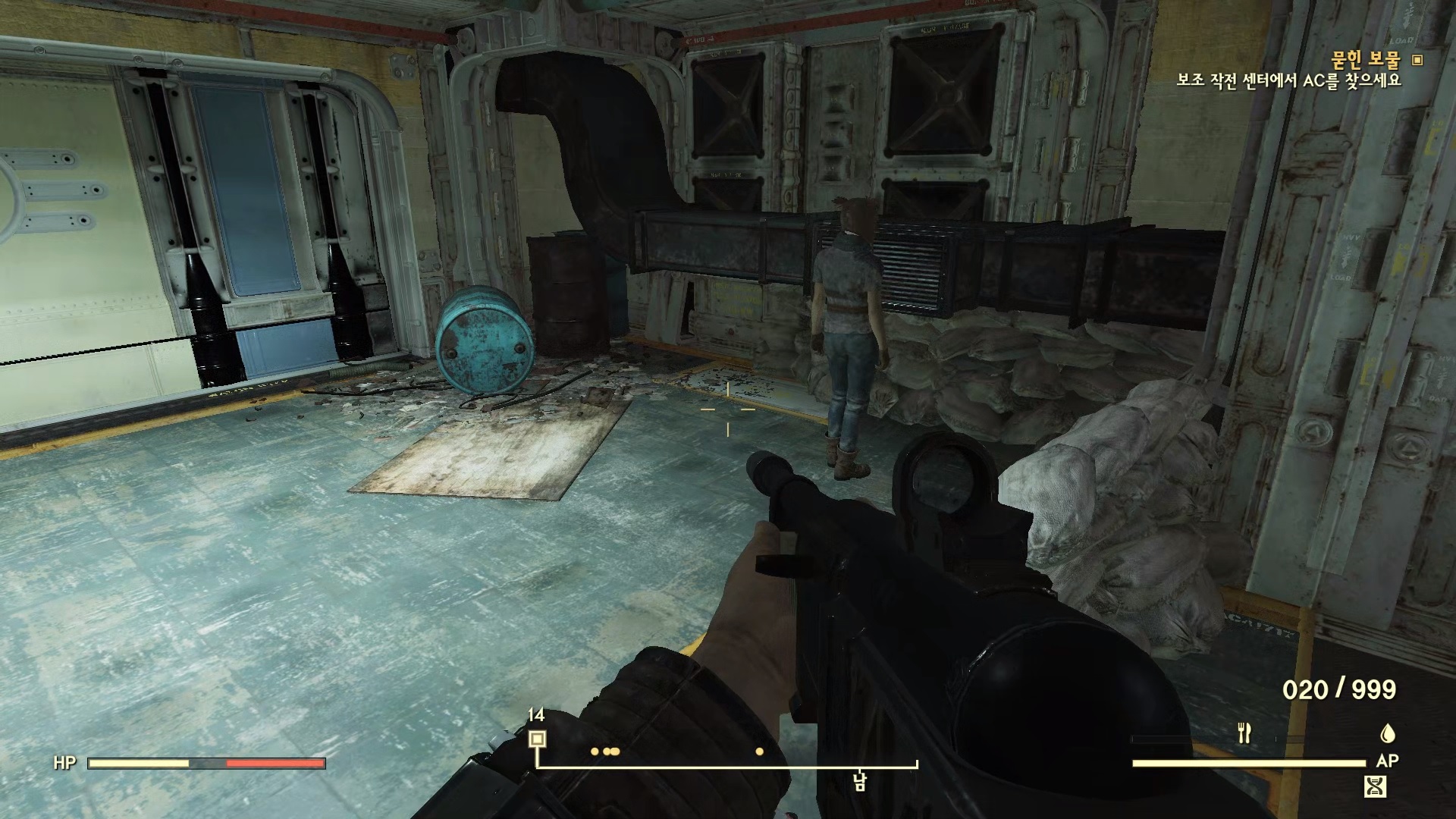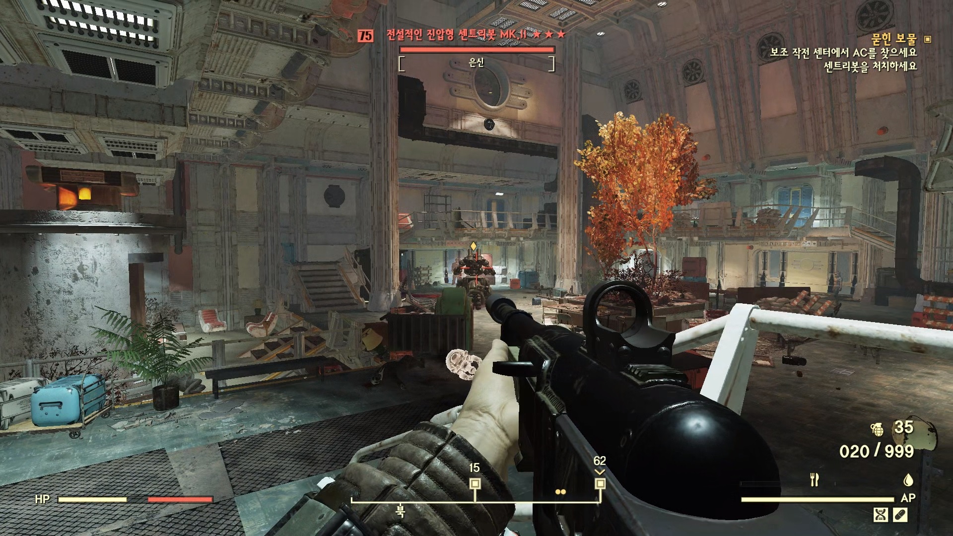 로봇과 레이저 포탑이 괴롭힌다. 레이저 포탑은 특히 VATS를 해서 때리는것보다 총구 조준해서 때리는데 데미지가 더 많이 들어간다. 내가 조준을 잘못 한건가..?