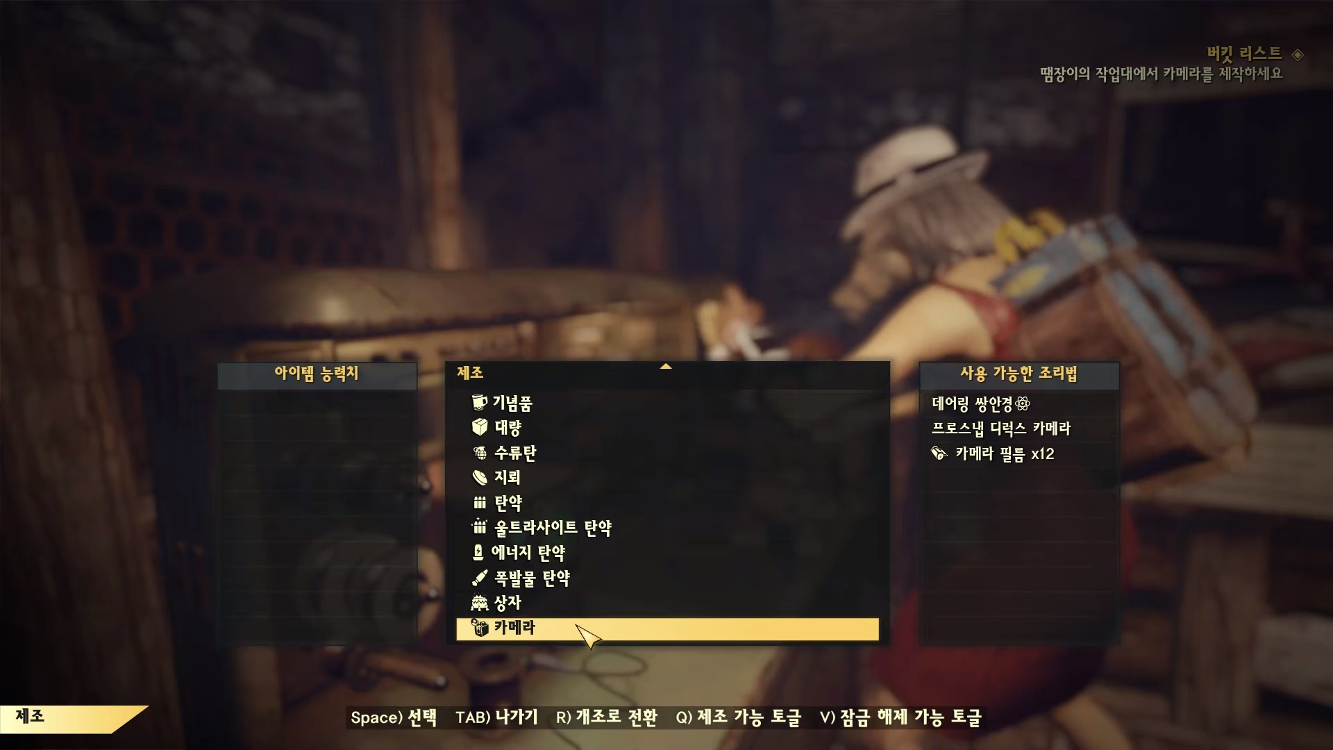 우선 가까운 땜장이 작업대에 가서 '카메라 => 포토스냅 디럭스 카메라'를 하나 만들자. 처음 만들면 퀘스트를 위해 필름 20개를 추가로 준다.
