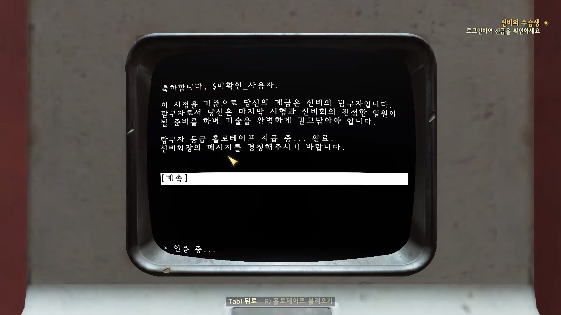 '신비회-계급: 수습생' 홀로테이프를 재생하자.