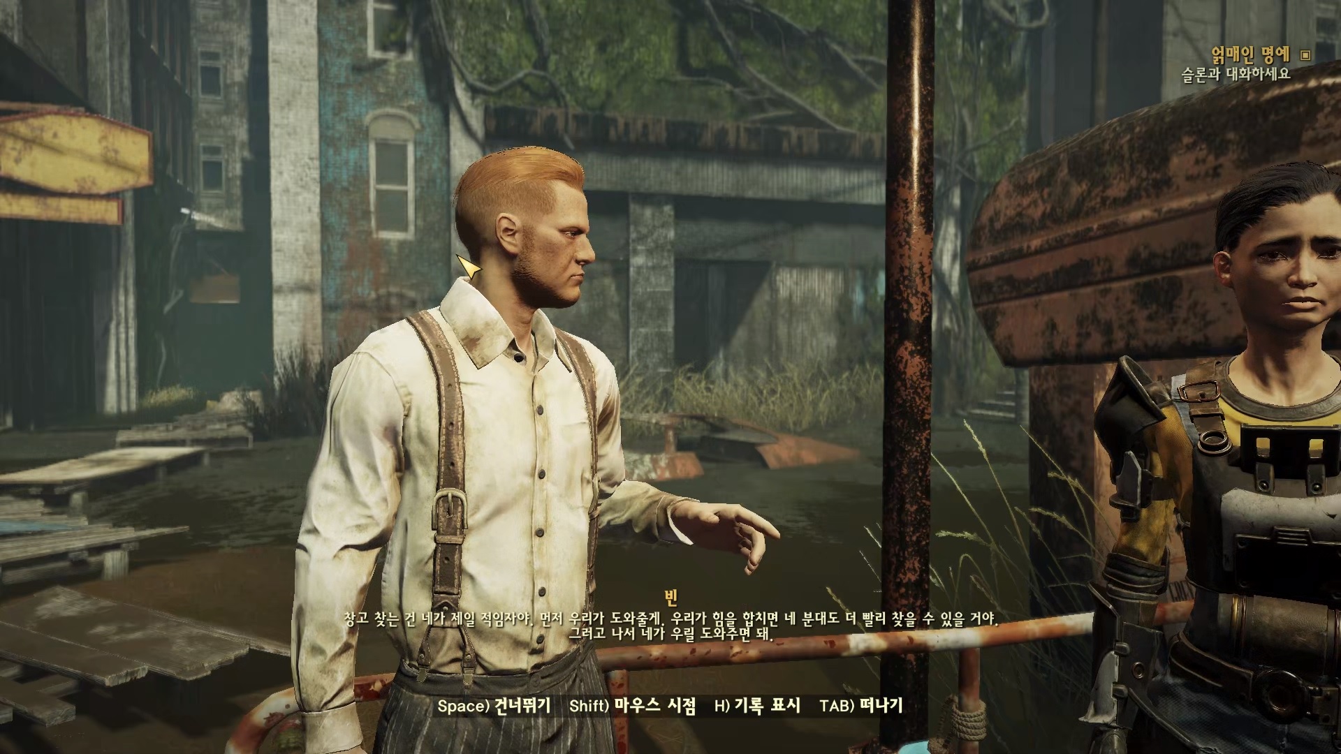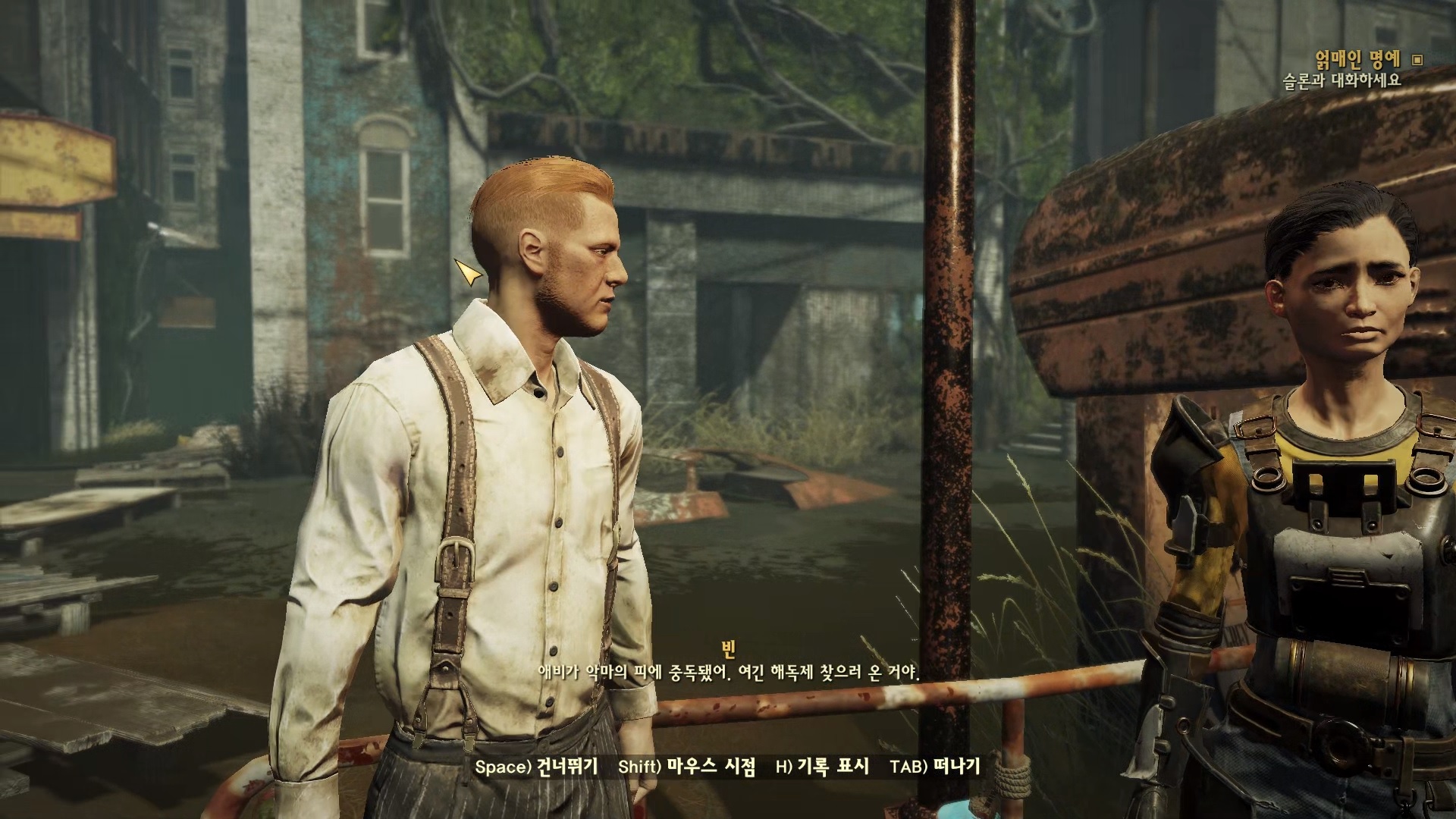 슬론도 도와주고 싶지만 오버그로운과의 전투 중 동료들이 뿔뿔히 흩어져서 그들부터 찾아야 된다고 한다. 옛 동료라고 하는거 보니 빈도 예전에는 이들과 같은 거리 청소부였던 모양이다.