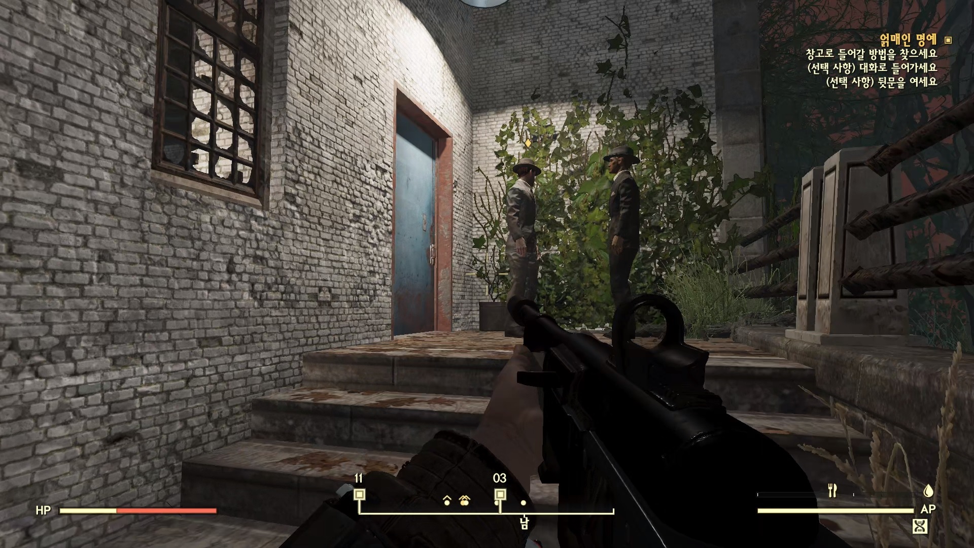 진입하면 폭력배와 오버그로운간에 전투가 진행 중이다. 둘다 빠르게 제압하고 진입한다.