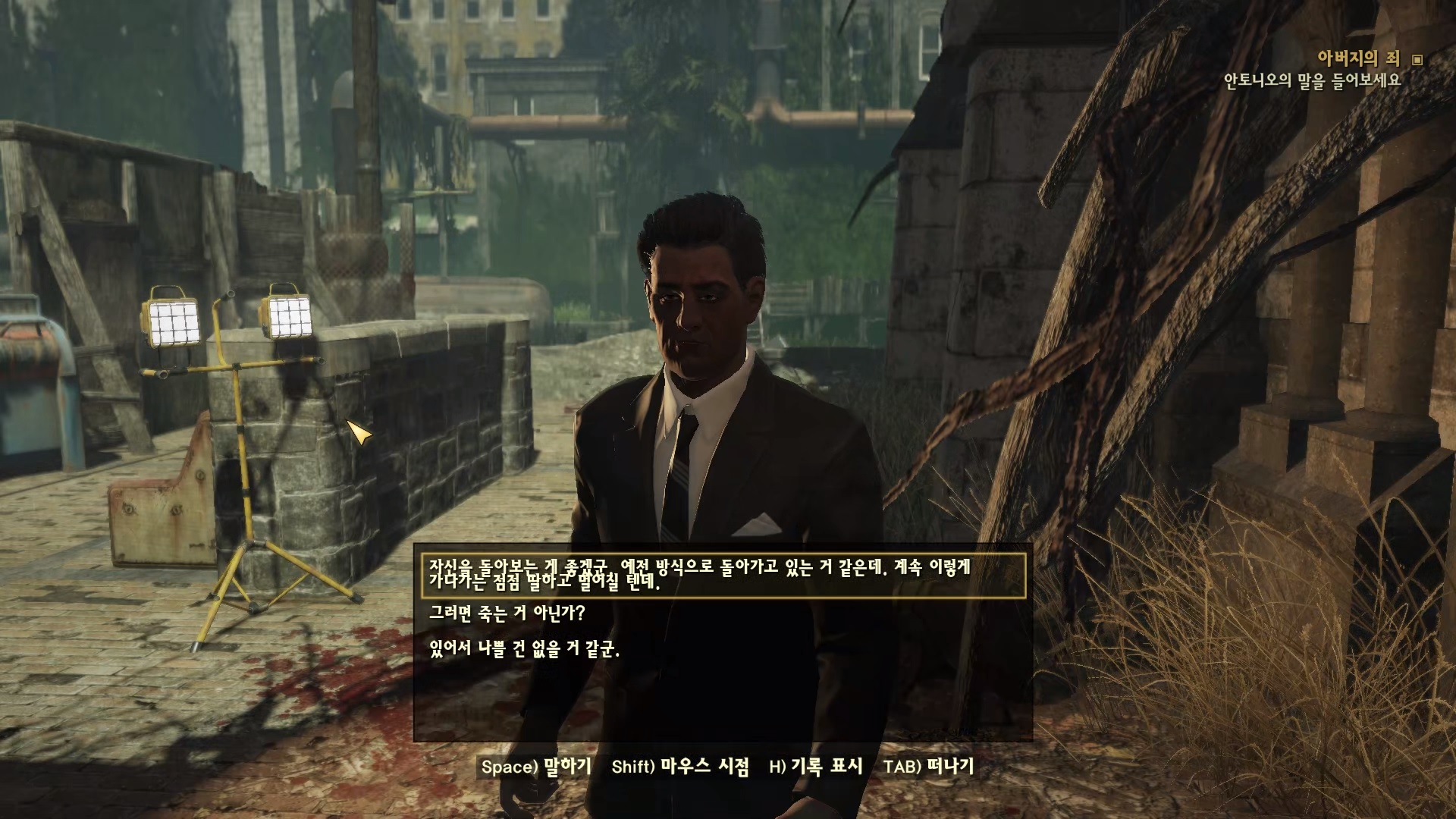 페르몬을 다 설치하고 안토니오와 대화 한다. 안토니오는 애비를 애지중지 했고 어릴때는 회의까지 참석 시키고 일처리를 어떻게 하는지도 가르쳐줬다고 한다. 훌륭한 마피아가 될거라는 생각까지도 했단다.