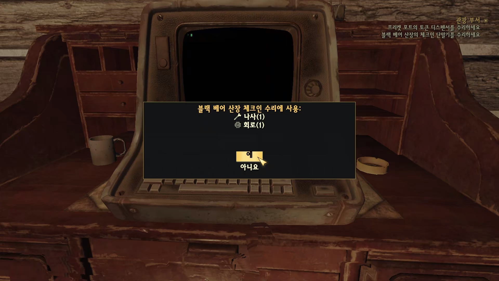 블랙 베어 산장으로 가서 체크인 단말기를 수리하자.
