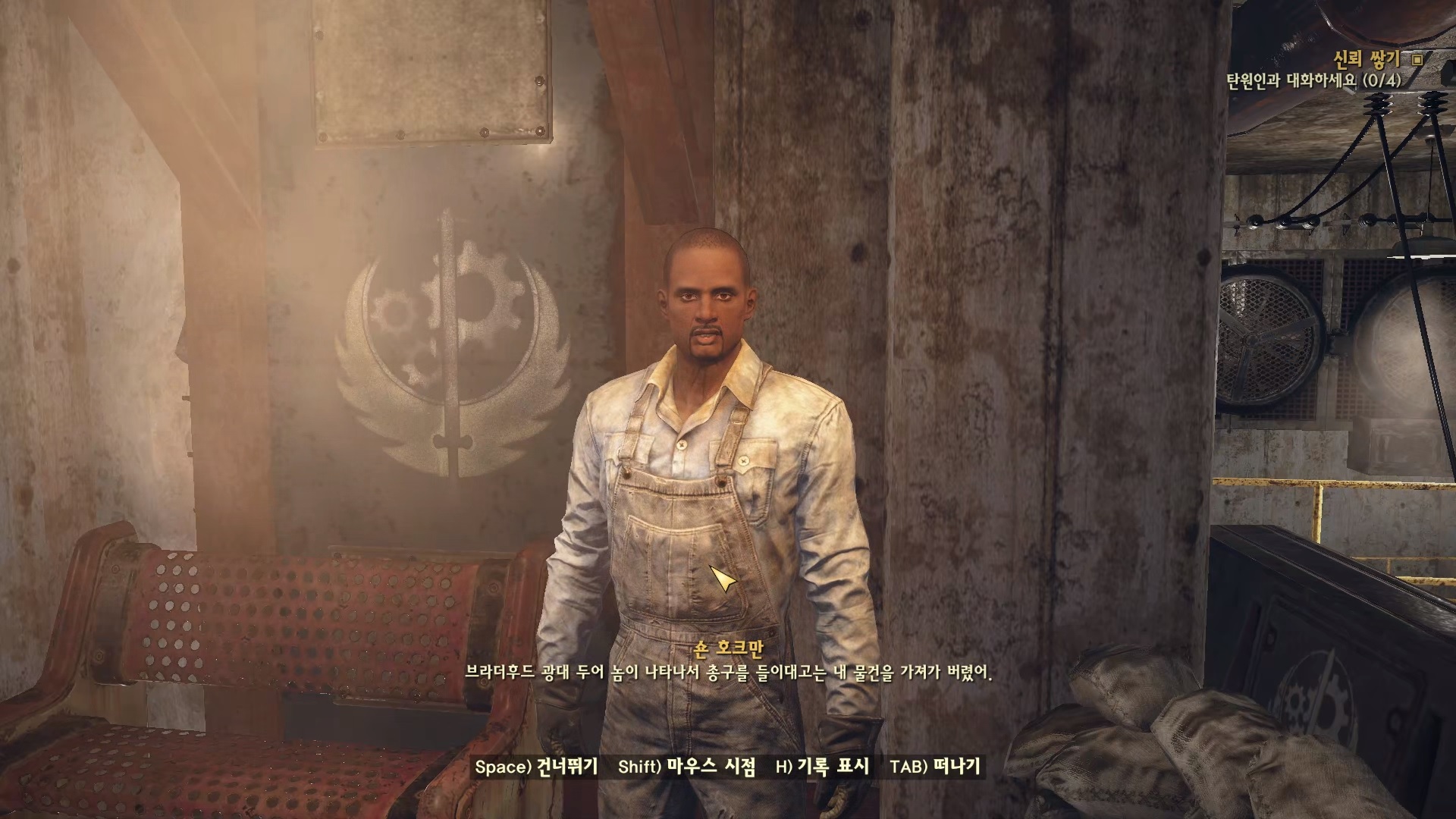 숀 호크만. 브라더후드 깡패가 물건을 가져가 버렸다고 한다.
