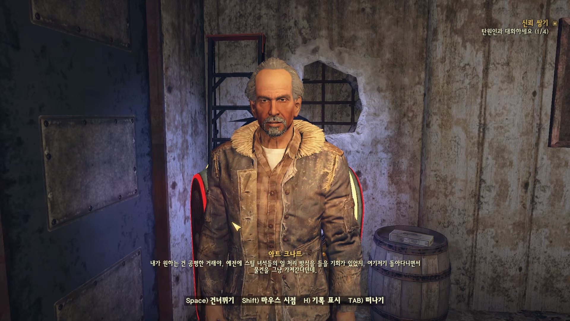 아트 크나프. 브라더후드가 맘대로 물건 가져간다고 하니 선수쳐서 거래를 틀려고 온 모양.
