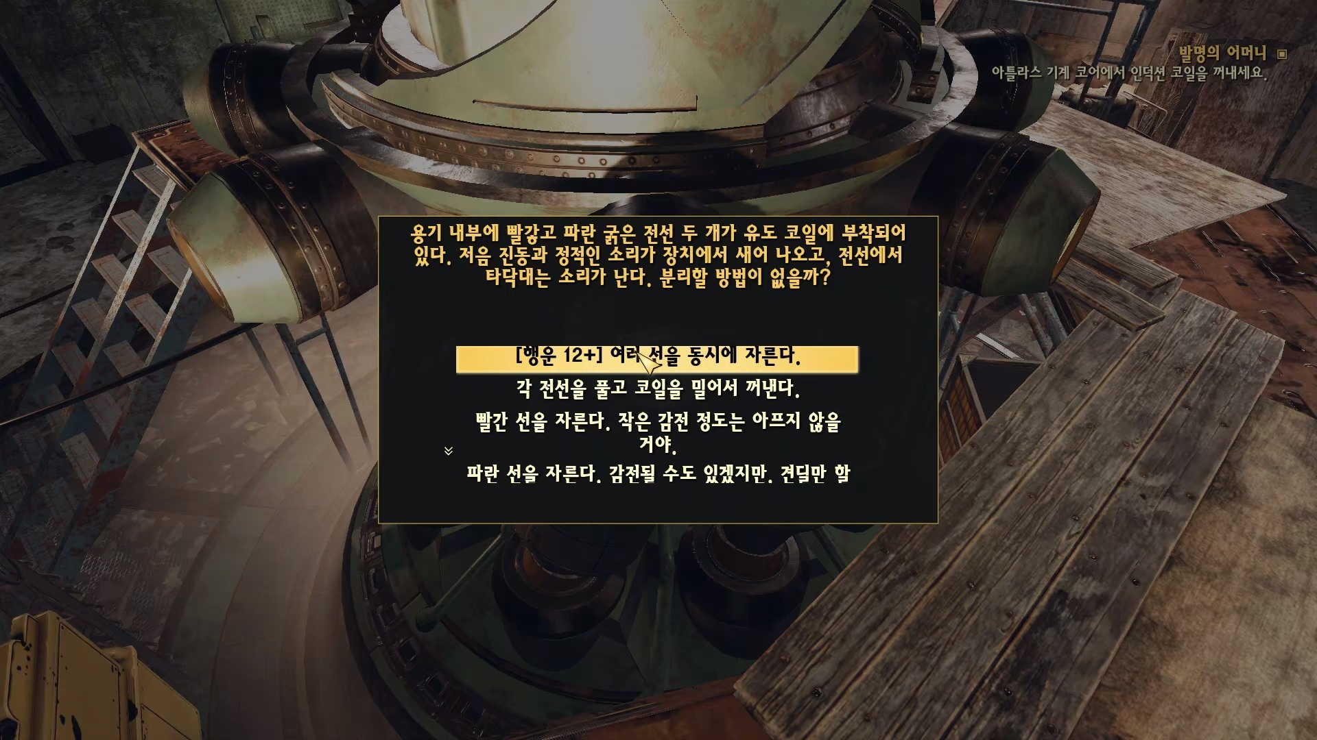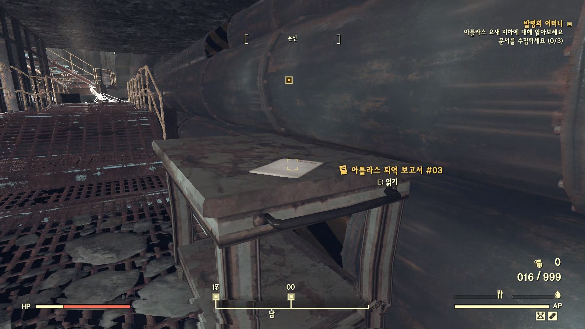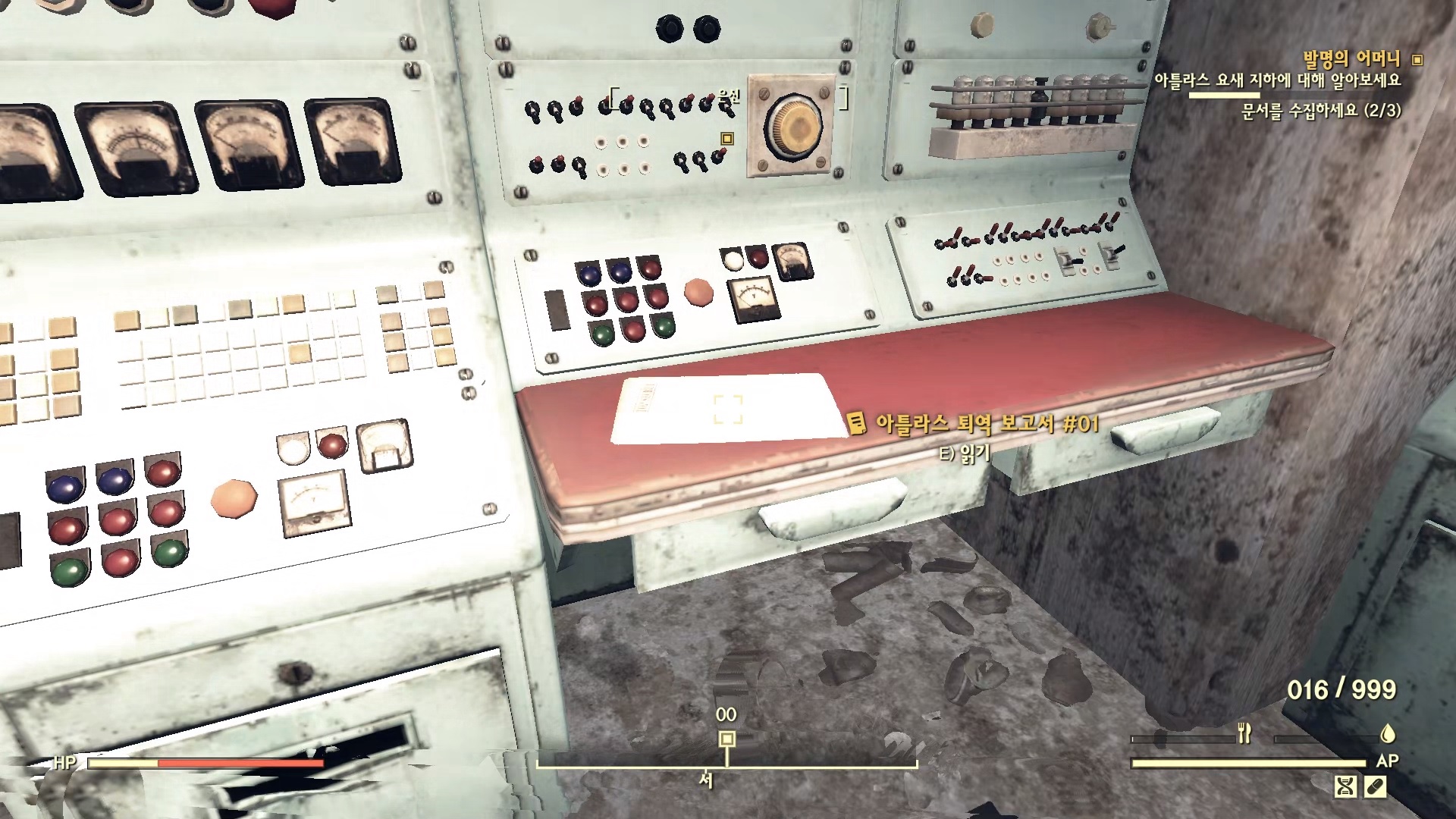 아틀라스 진단 단말기로 가서 진단을 받아보자. 그러면 핵심 부품 상태들이 쭉 나온다. 다시 발데즈에게 가서 대화를 하자.