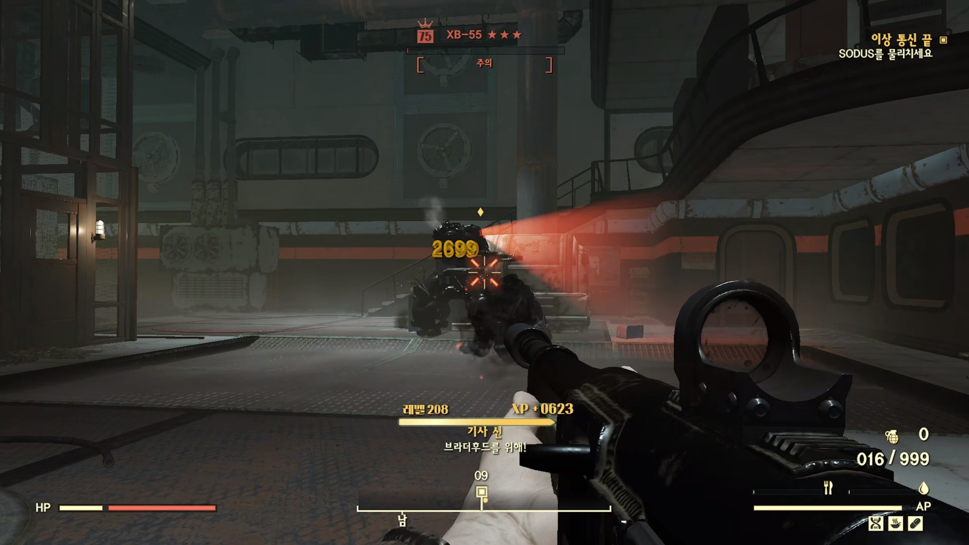 침수 된 곳을 벗어나서 통신 센터에 도착. 파워 아머 입은 스코치드라니.. 하지만 순삭.