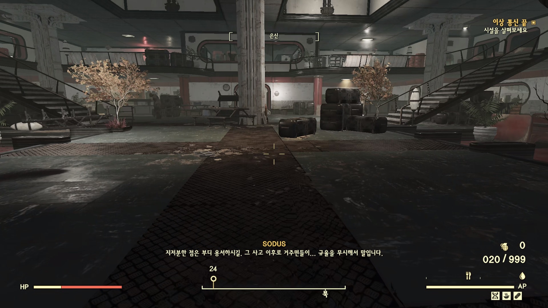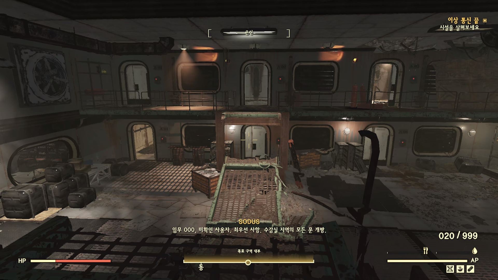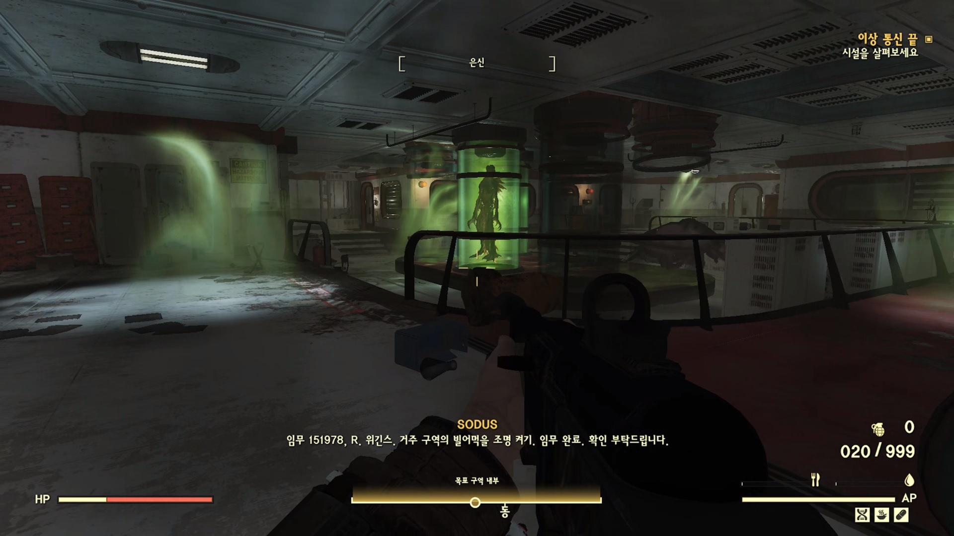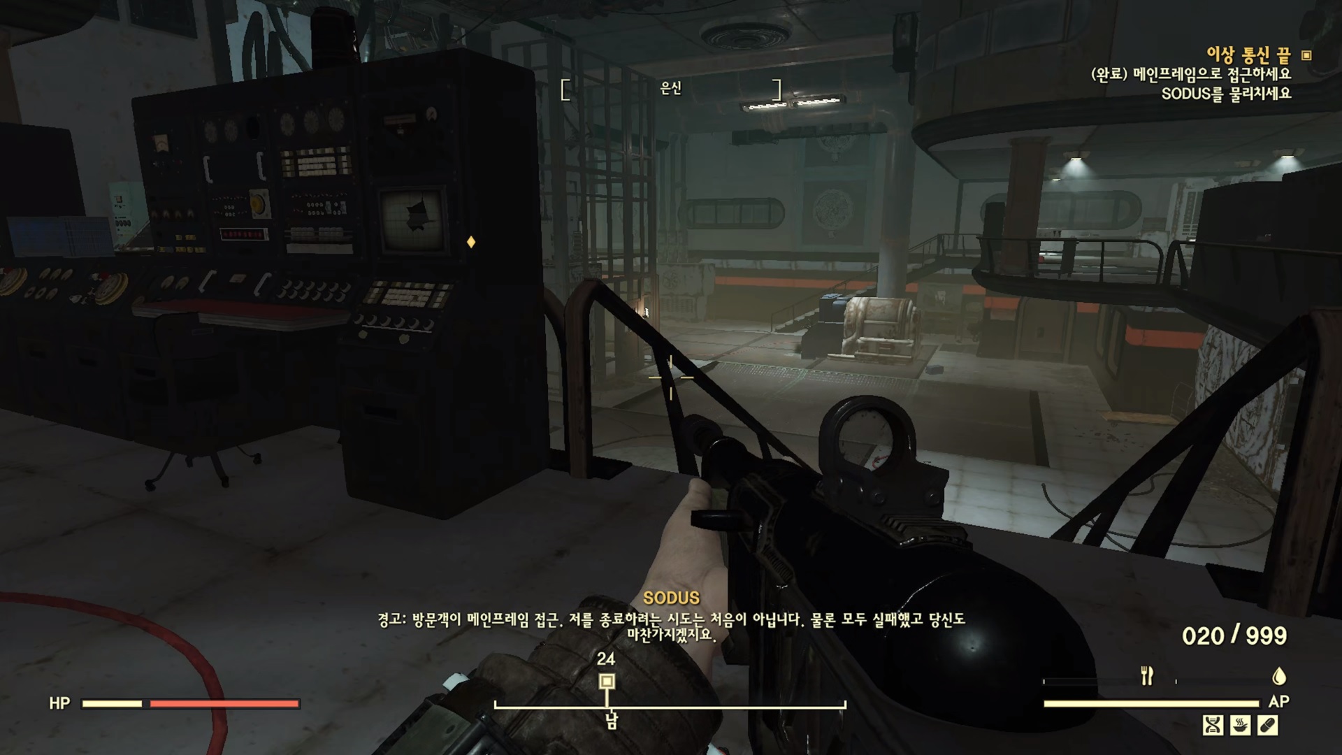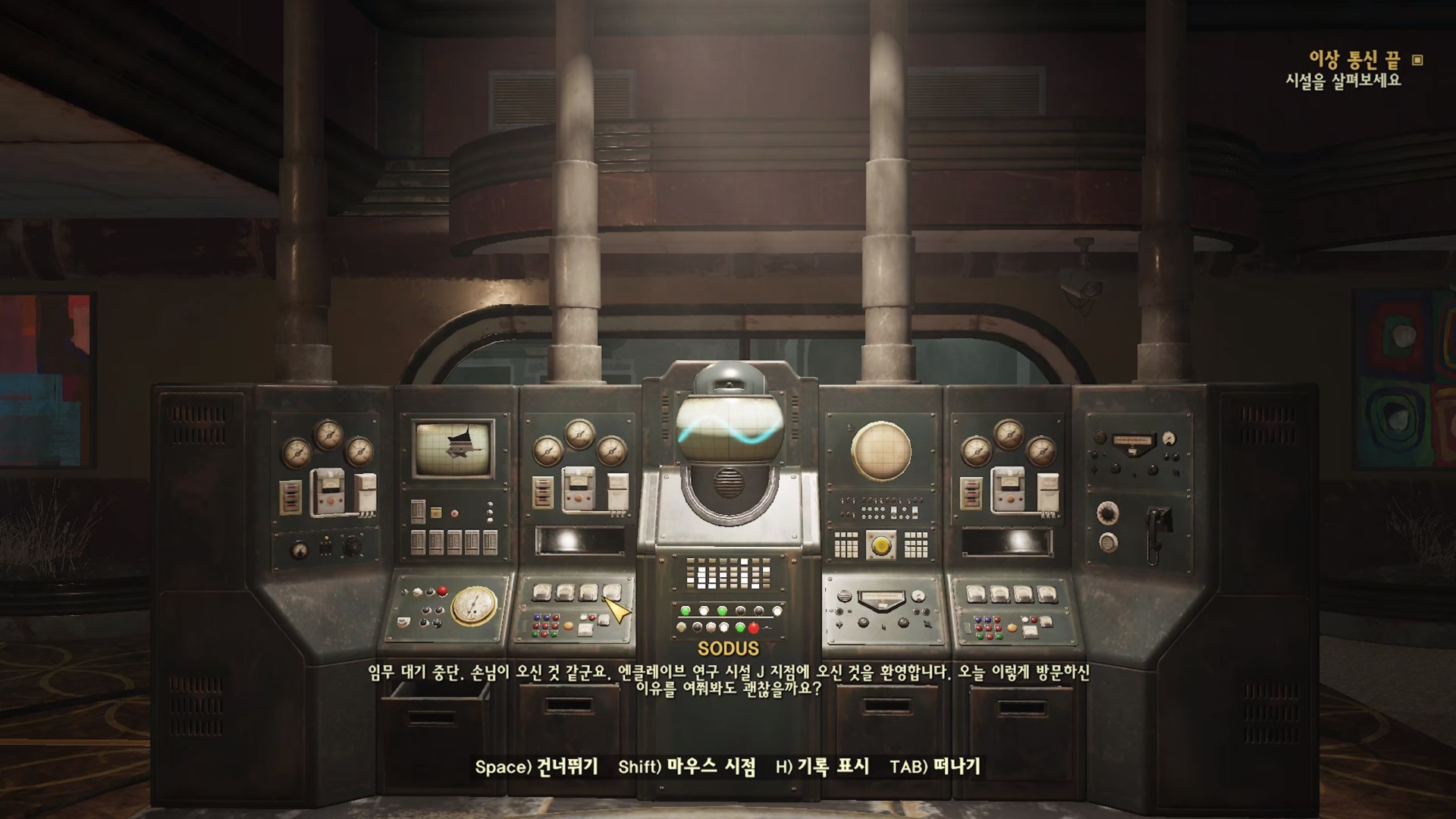 안에 들어가면 SODUS가 나와서 방문한 이유를 물어본다. 화이트스프링에 있던 MODUS는.. 앞에 M이 밀리터리고 얘는 사이언스인가 보네..
