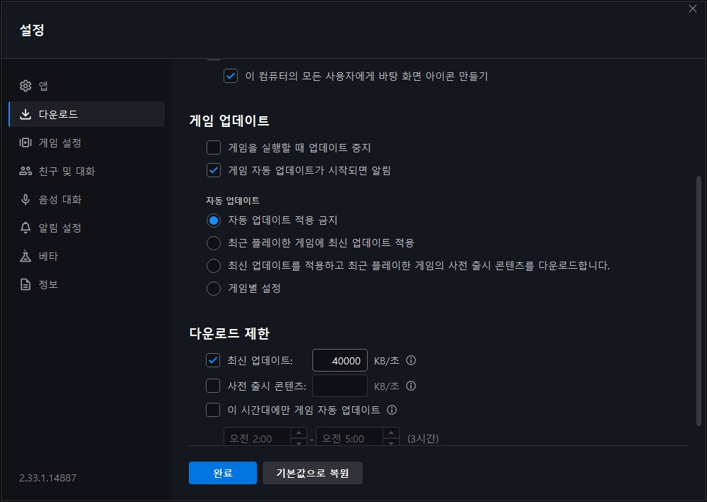 그래서 설정 => 다운로드 들어가서 '자동 업데이트 적용 금지'를 체크하고 난 다음에 파일 이름을 바꾸자.