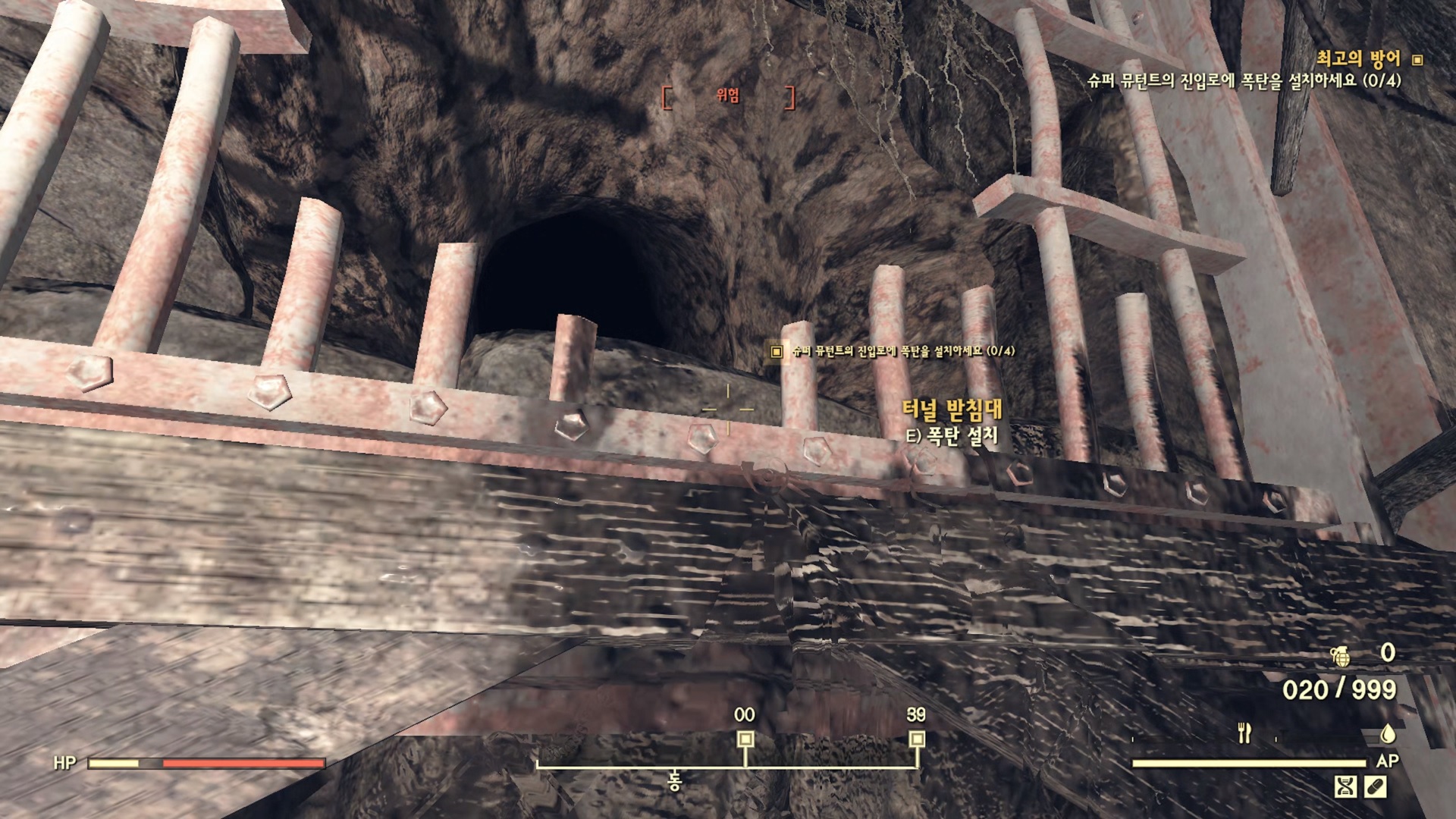 이제 4개의 터널 받침대에 폭탄을 설치하자.
