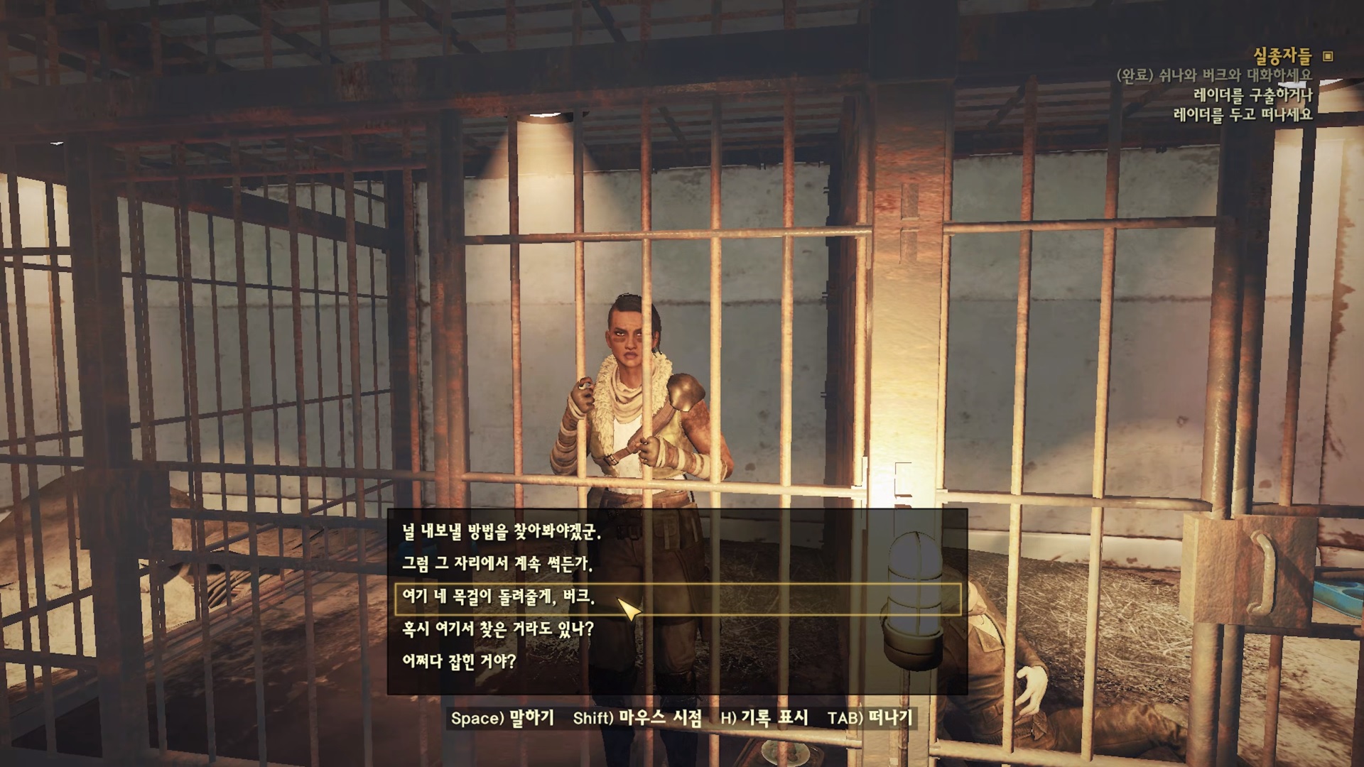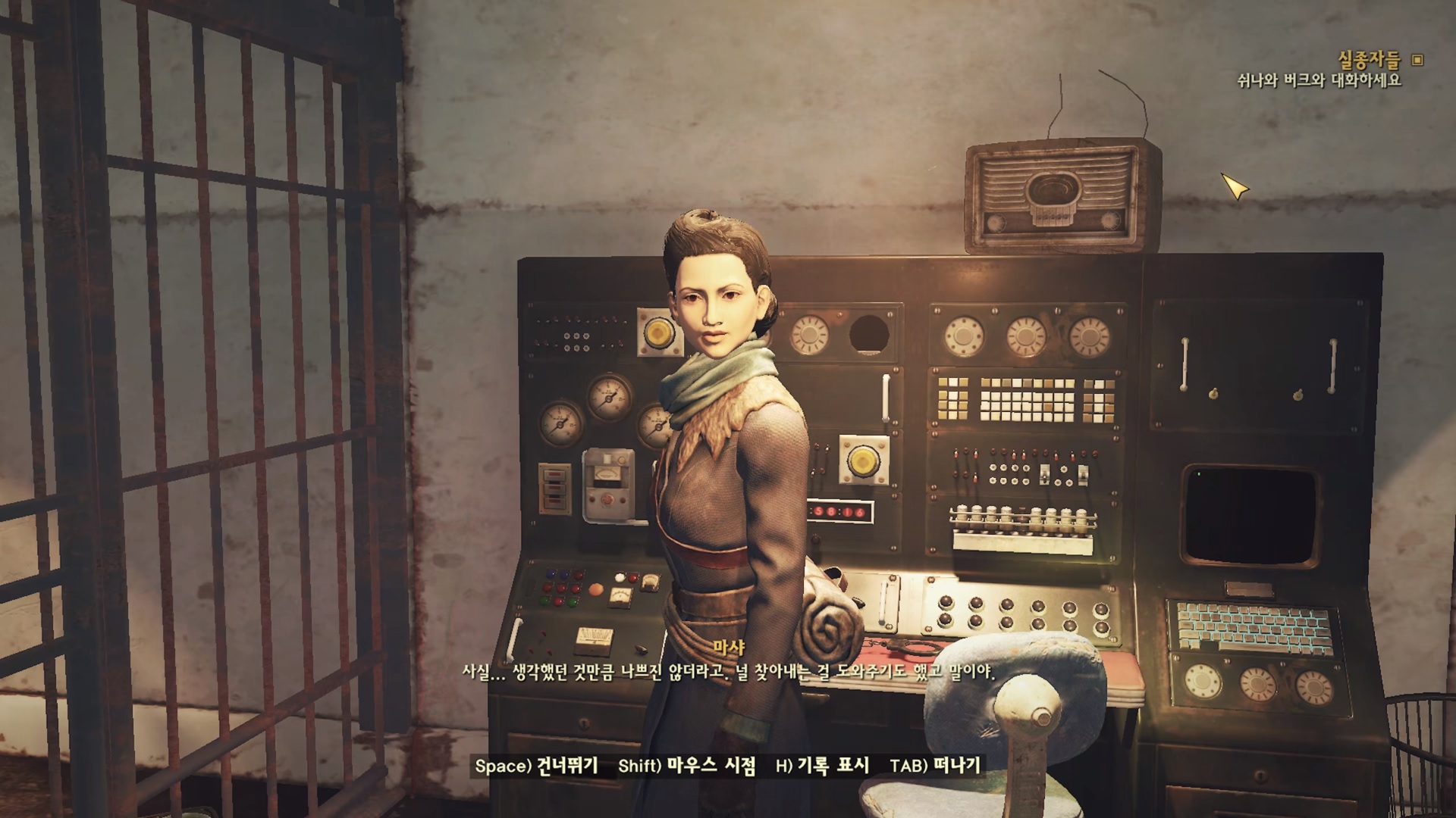 감옥에 갇혀 있는 쉬나와 버크. 일단 대화를 하자. 마샤는 처음에 비해서 많이 온화해졌다. 아틀라스로 데리고 갈 수 있겠군.