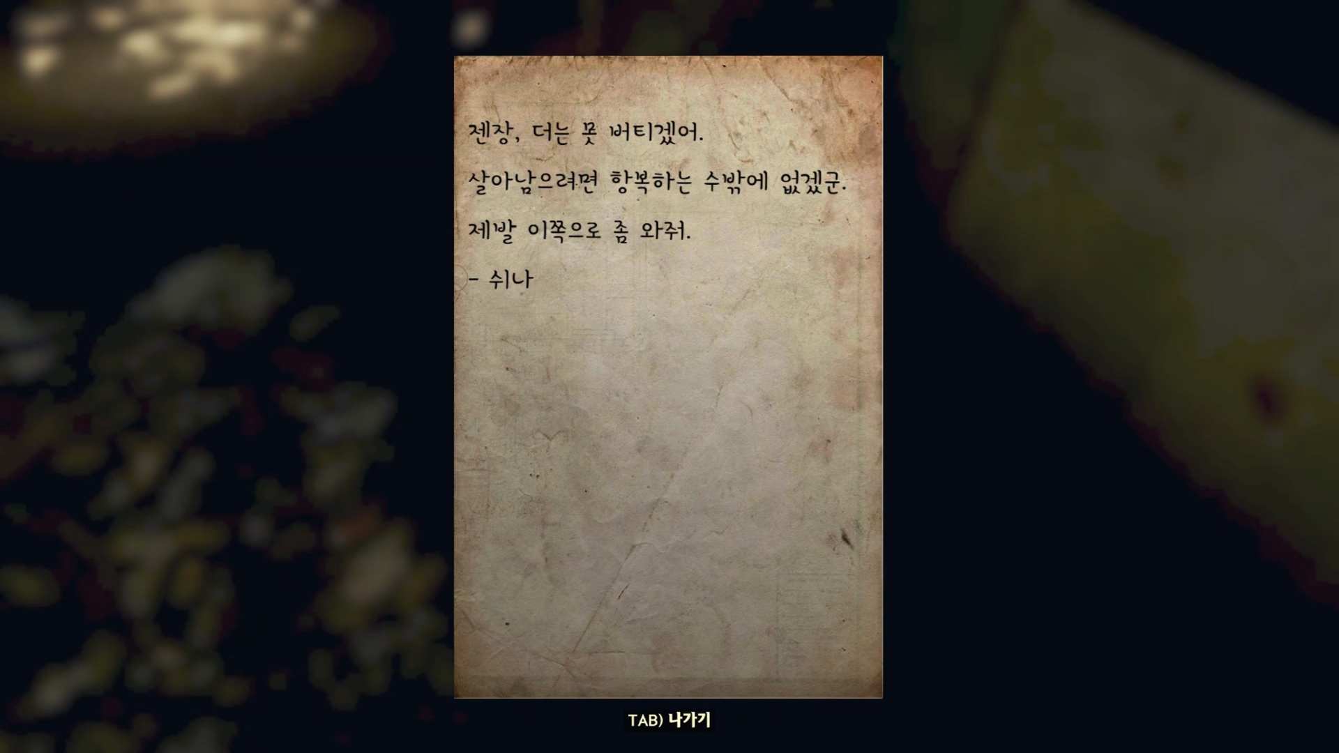 급하게 적힌 쪽지를 발견한다. 쉬나와 버크는 항복 했다고 한다.