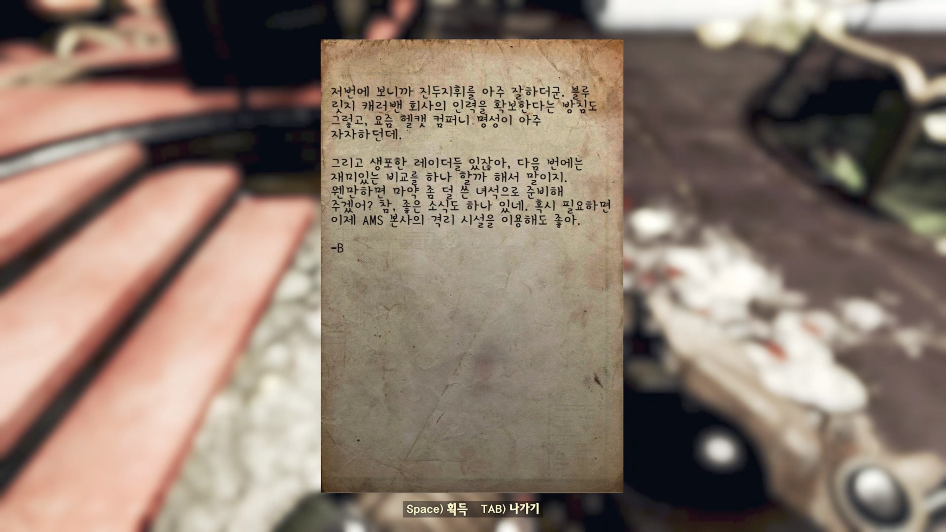 키트를 처치하고 소지하고 있던 '블루 릿지 재인도'를 조사하자. B.. 의문의 인물.