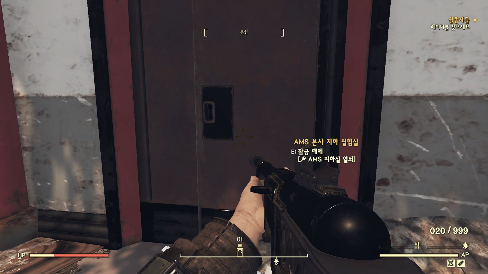 AMS 로비로 갔다가 바로 옆문을 지하실 열쇠 열고 지하 실험실로 내려가자.