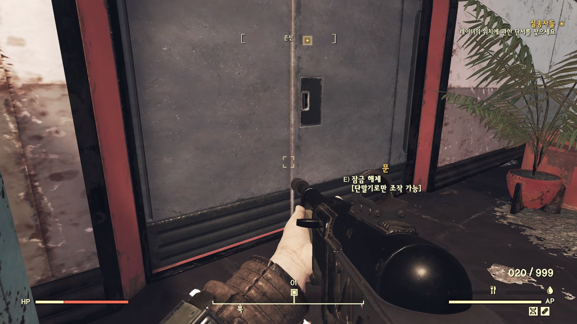 잠긴 문에 도달하게 되면 옆에 시설 단말기에 접속한다. '헬켓 극비 => 문 열기'로 문을 열고 들어가자.