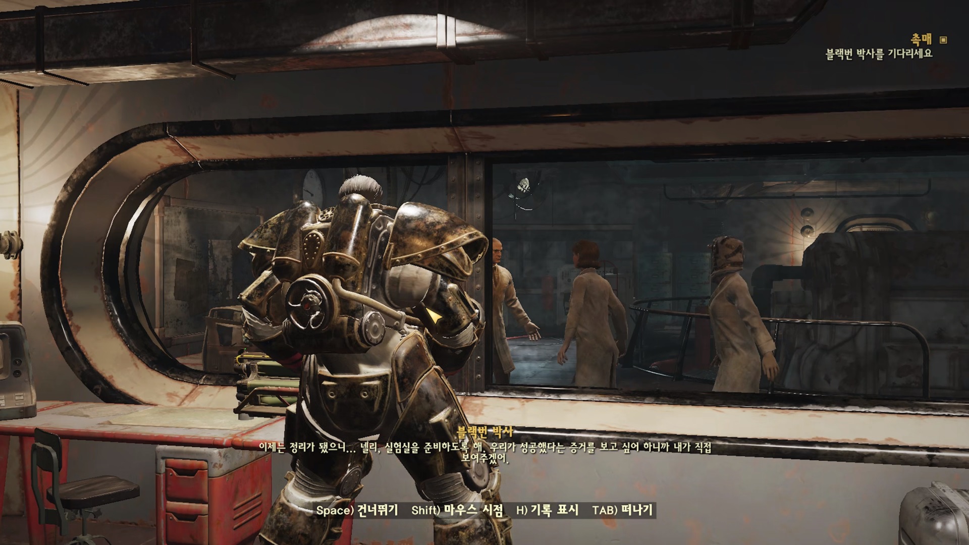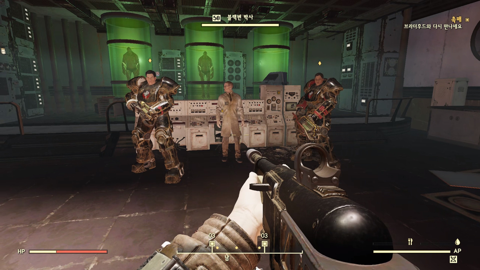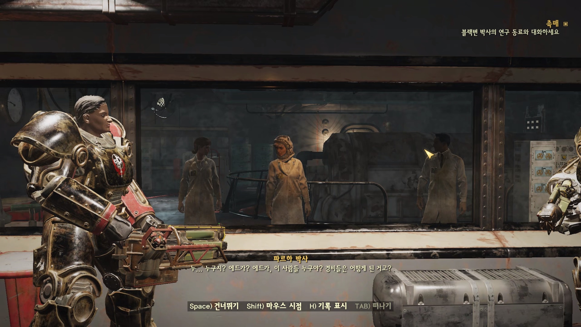 블랙번의 최후를 보고 빠르게 자신들의 잘못을 인정하는 박사들... 문 열어 주기 싫다는거 힘 12+로 '죽기 싫으면 문열어!' 해주자. 그럼 바로 문을 열어준다. 불굴 템이 좋긴 하네 스페셜이 높으니 퀘스트 하기가 너무 편하다.