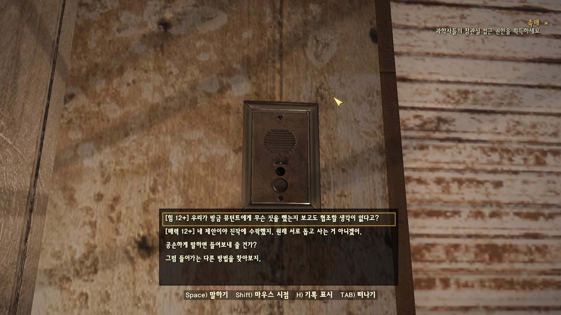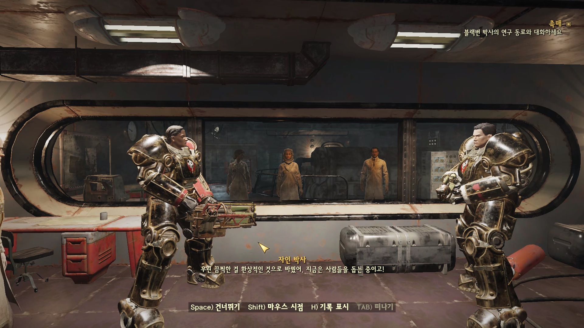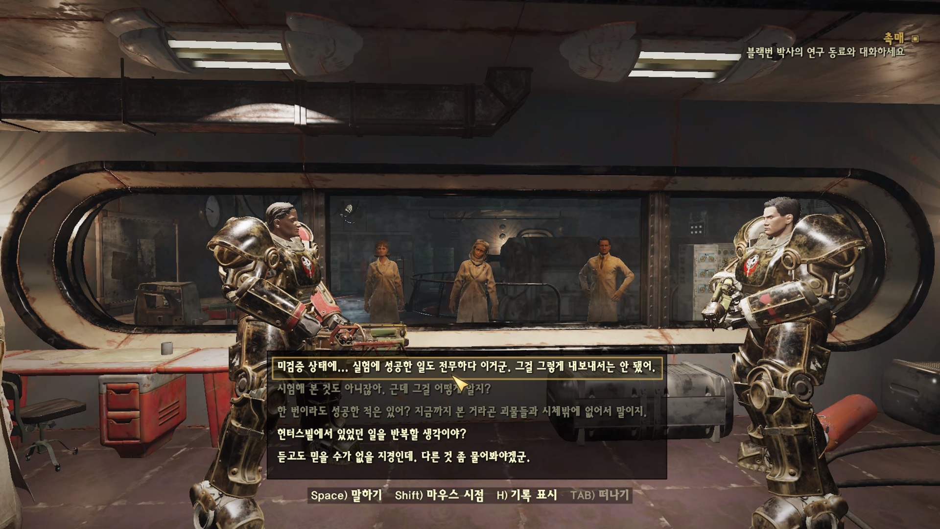 블랙번의 최후를 보고 빠르게 자신들의 잘못을 인정하는 박사들... 문 열어 주기 싫다는거 힘 12+로 '죽기 싫으면 문열어!' 해주자. 그럼 바로 문을 열어준다. 불굴 템이 좋긴 하네 스페셜이 높으니 퀘스트 하기가 너무 편하다.