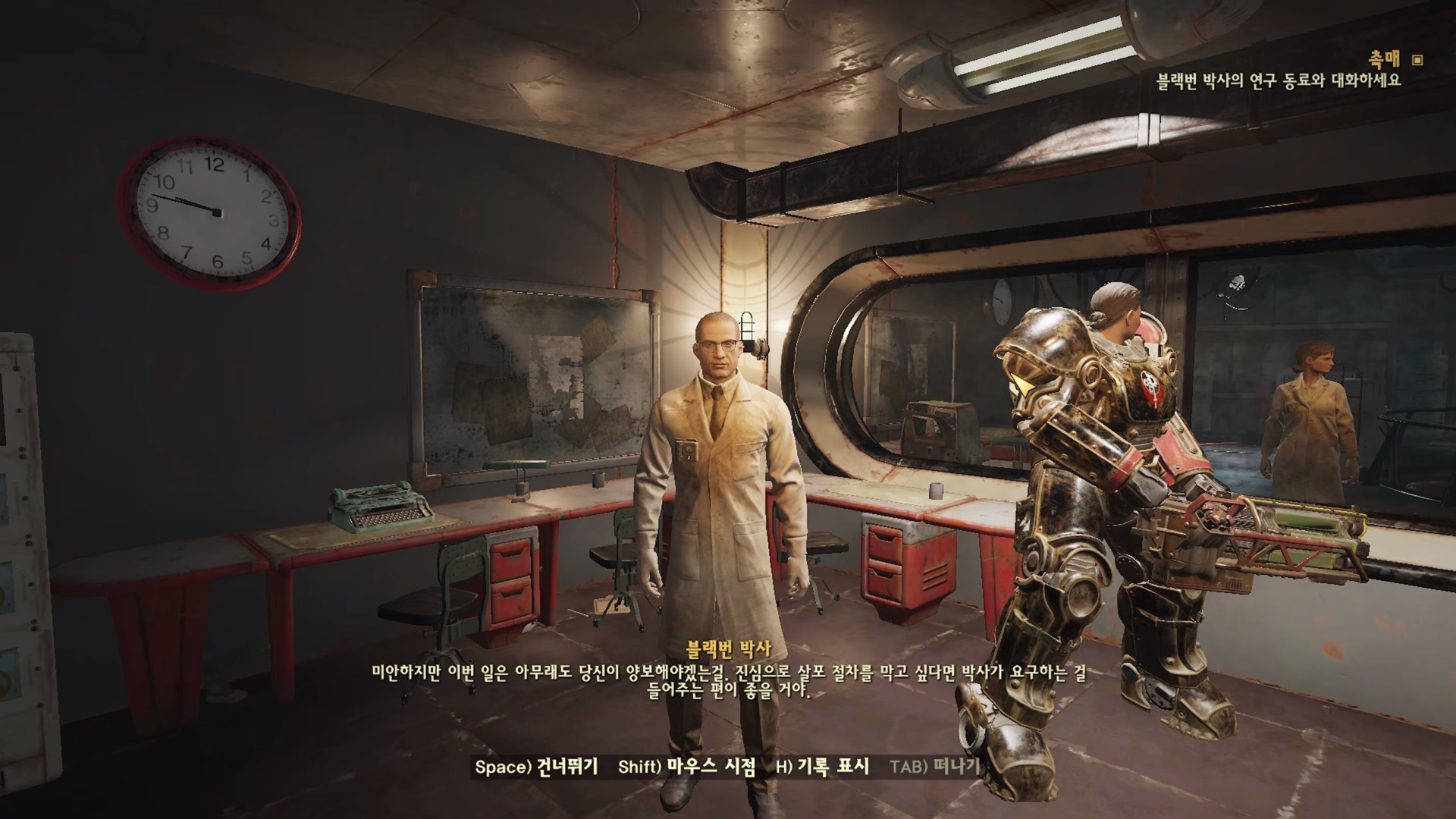 해치로 내려가서 블랙번 박사의 실험을 지켜보자.